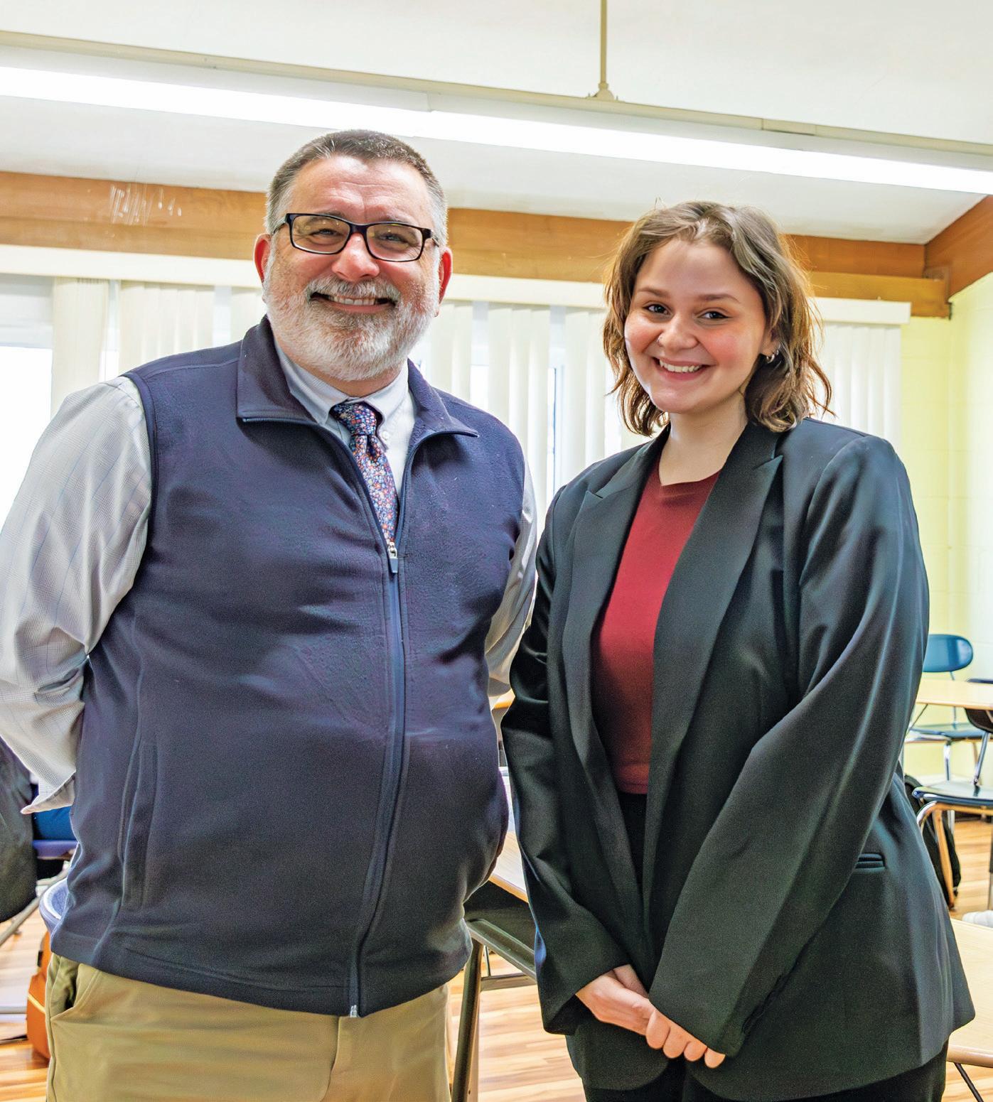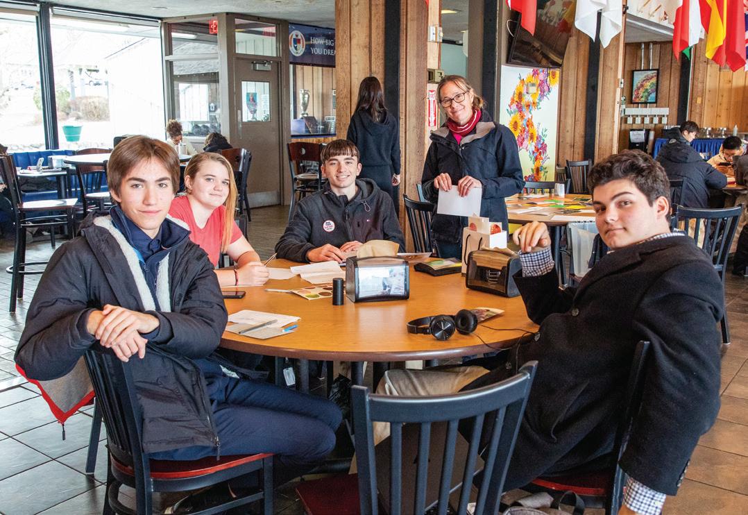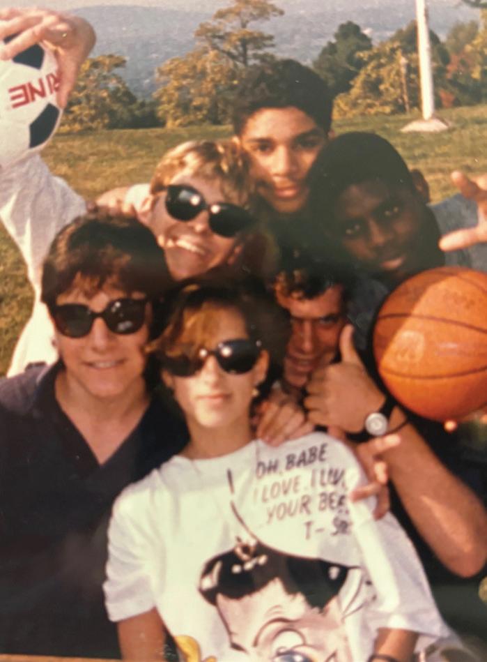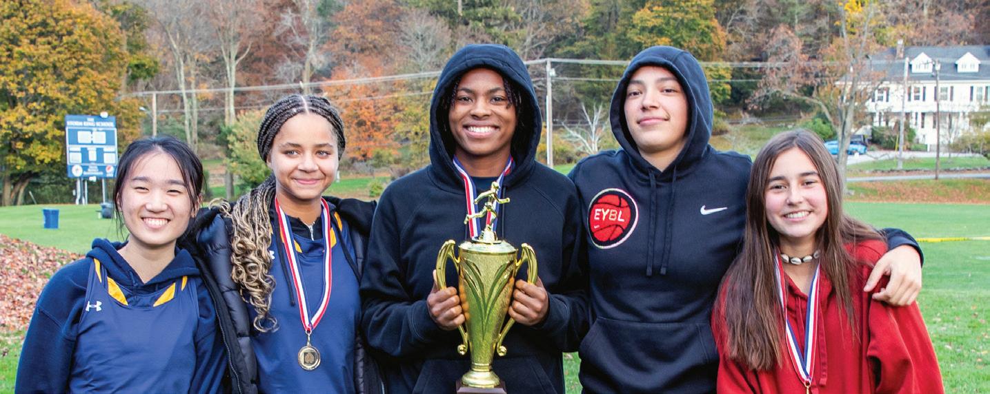 1 Back row from left: RJ Delahaye ’22, Christopher Smith ’22, Sele Birchwood ’09, Sarah Fulton ’09, Jonathan Lopes ’00, Johnathan Flores ’12, Precious Omoshola ’23, Trevor Hughes ’13, Richard Bailey ’02, Lynn Crevling ’72, Dick Broughton ’54, Jim Perlberg ’70; Front row standing: Dennet Rivera ’03, Daniella Jones-Baynes ’97, Shauntiece “Puddon” Hunt ’01; Kneeling: Victoria Dos Santos ’11 and Andrew Baynes 2 Precious Omoshola ’23 playing for the Student/Faculty Team challenges Jon Lopes ’00 3 College payers Christopher Smith ’22 (Alfred University) and RJ Delahaye ’22 (Franklin Pierce University) 4 Shauntiece “Puddon” Hunt ’01 5 Precious Omoshola ’23 reacts to the refs’ call while standing beside past coach Kevin Houston and Associate Dean of Students Sara Sandstrom 6 Marisa Chapman ’24, Athlete of the Year and Sele Birchwood ’09 go head to head 7 Trevor Hughes ’11