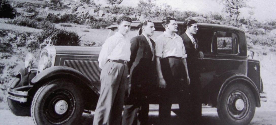 Membros do SEG na xeira de 1934 polas Terra de Deza diante do taxi do Mazaroco (historiasdedeza.wordpress.com)