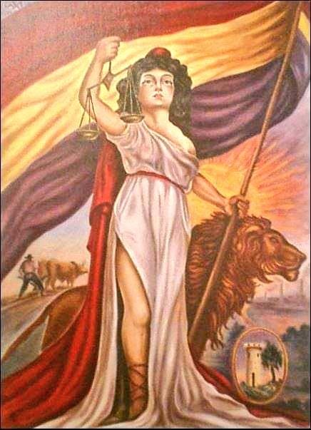 Co golpe de Estado do 18 de xullo de 1936 os falanxistas entraron no Concello e apoderáronse dos símbolos republicanos para queimalos nunha fogueira, entre eles o cadro de Laxeiro. Un dos participantes, e que despois foi alcalde franquista, Alfonso Garra, consciente do valor da pintura, salvouna da fogueira e gardouna na súa casa, onde permanece durante a ditadura e unha boa parte do actual réxime. Ata que en 1988 a Asociación Cultural o Naranxo iniciou unha campaña para solicitar dos herdeiros de Alfonso Garra a devolución do cadro ao seu lexítimo propietario, o Concello de Lalín. Actualmente esta obra está en mans do Concello de Lalín, no Museo Ramón María Aller Ulloa, mais non á vista da cidadanía, salvo cando as obras de Laxeiro están en exposición, daquela pódese contemplar o cadro no segundo andar do Museo.