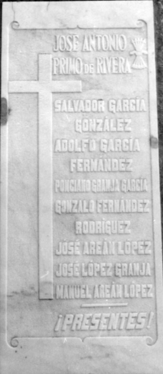 Detalle da placa coa relación de “Caídos por Dios y por España”.