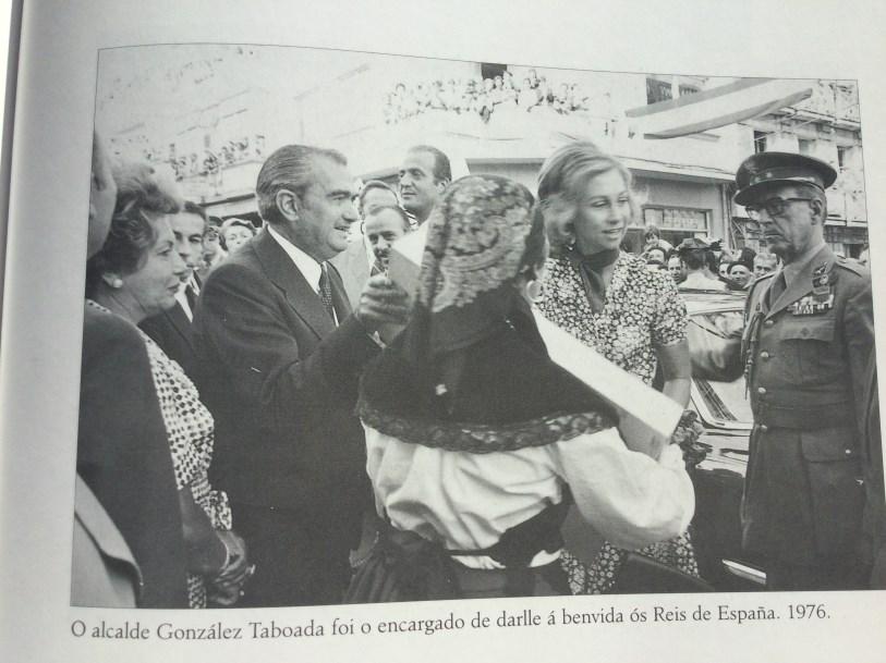 Luis González Taboada (derradeiro alcalde franquista) dándolle a benvida aos Reis de España. 1976