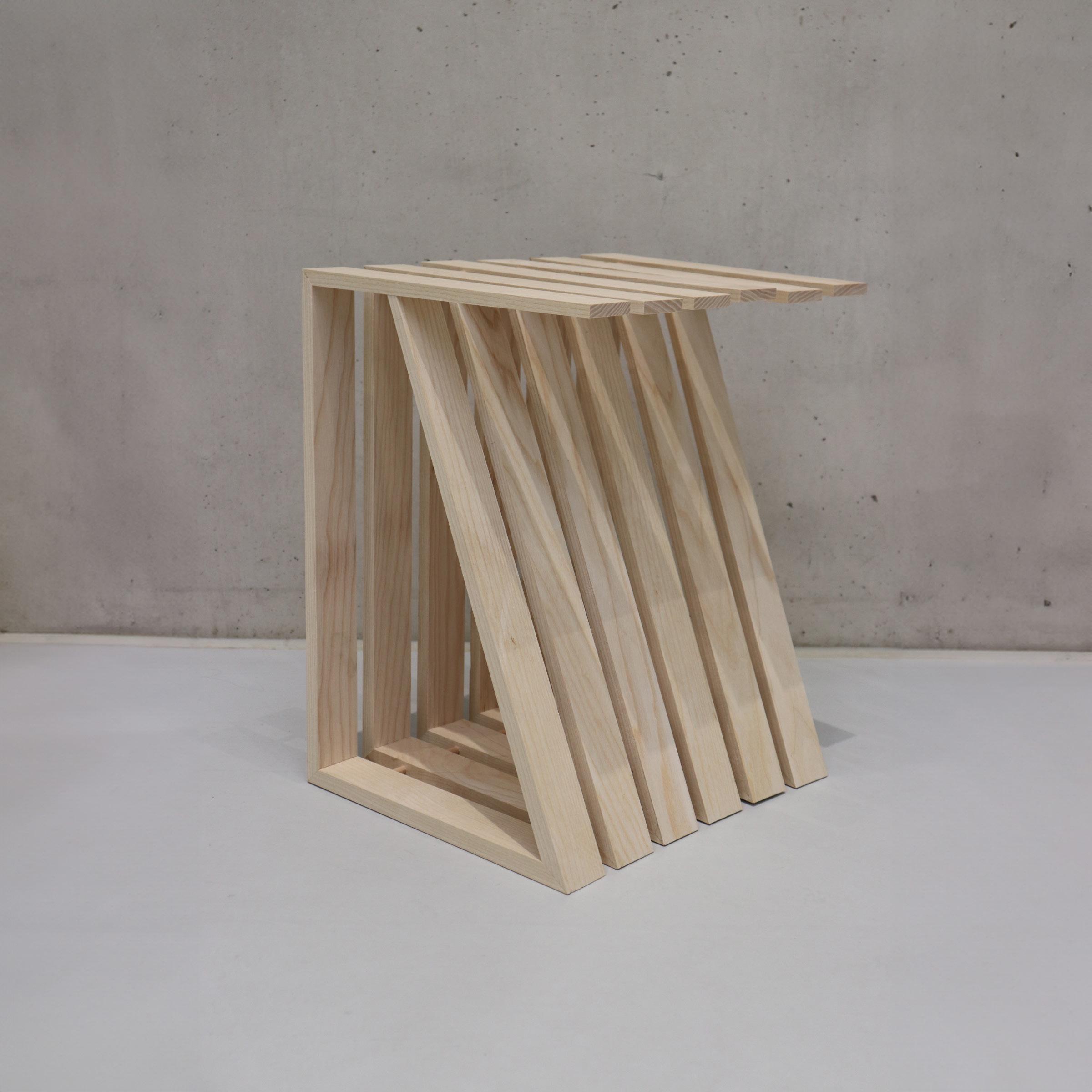 The Konos stool (derived from the ancient Greek κῶνος kōnos cone) is characterised by six tapered modules that are connected to each other. Each module consists of four elements that taper by a subtle value. The multiplication generates a depth that emphasises the refinement of the design. The stool can be used not only as a seat but also as