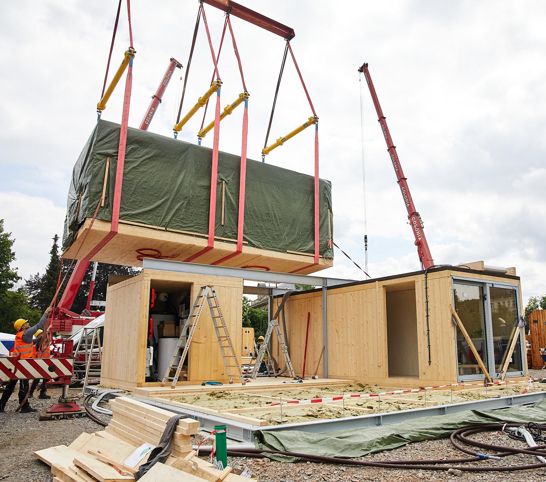 context and incorporate the surrounding area, including the socioeconomic issues and challenges anchored therein. The aim is to achieve redensification with living space against the backdrop of a climate-neutral building stock. In the Building Challenge, the teams build a representative section of the Design Challenge as a so-called House Demonstration Unit (HDU) on the event site Choose one Urban Situation Build the Unit Design and