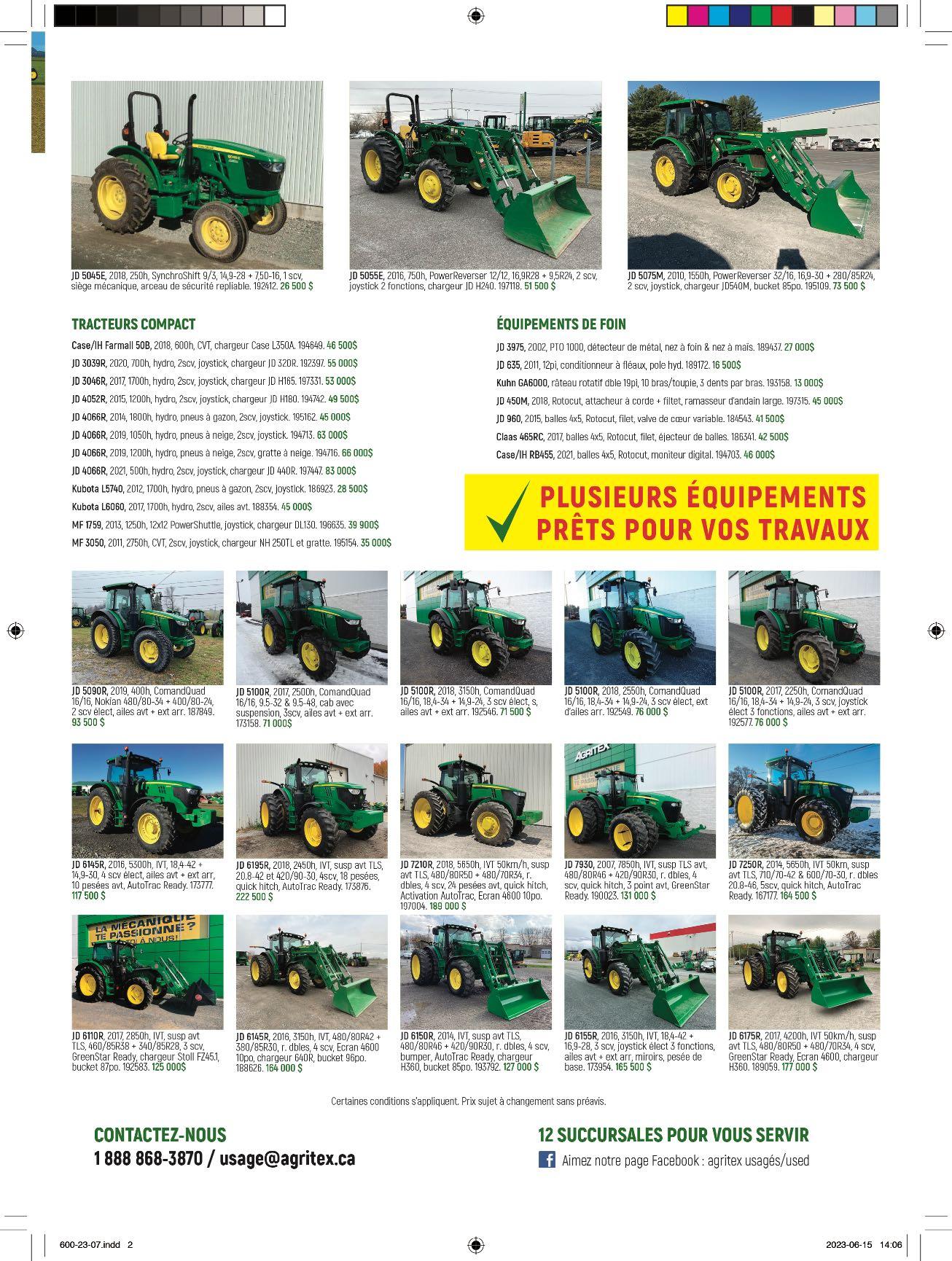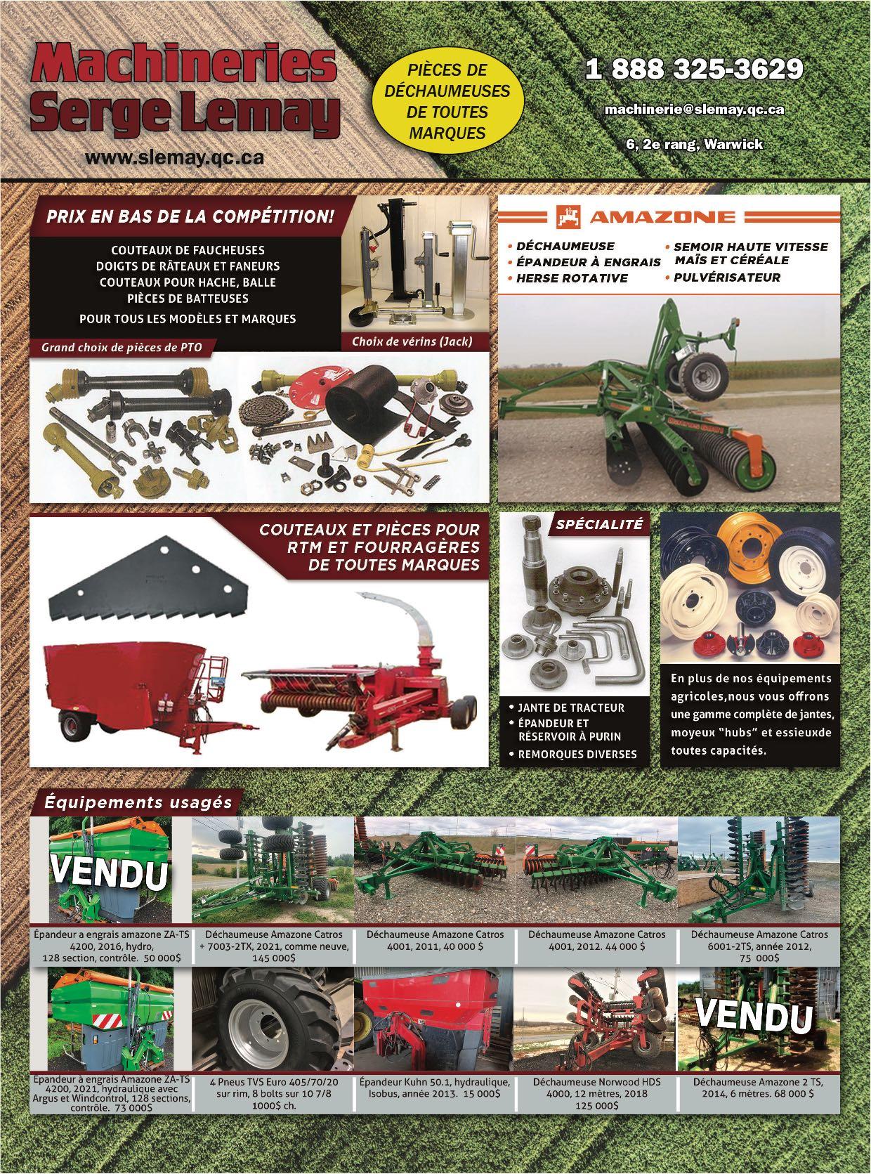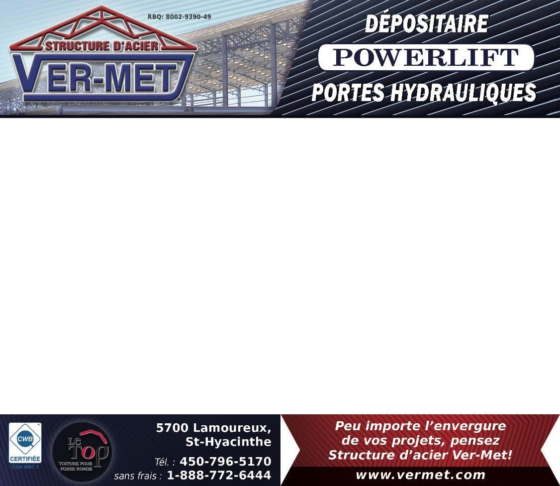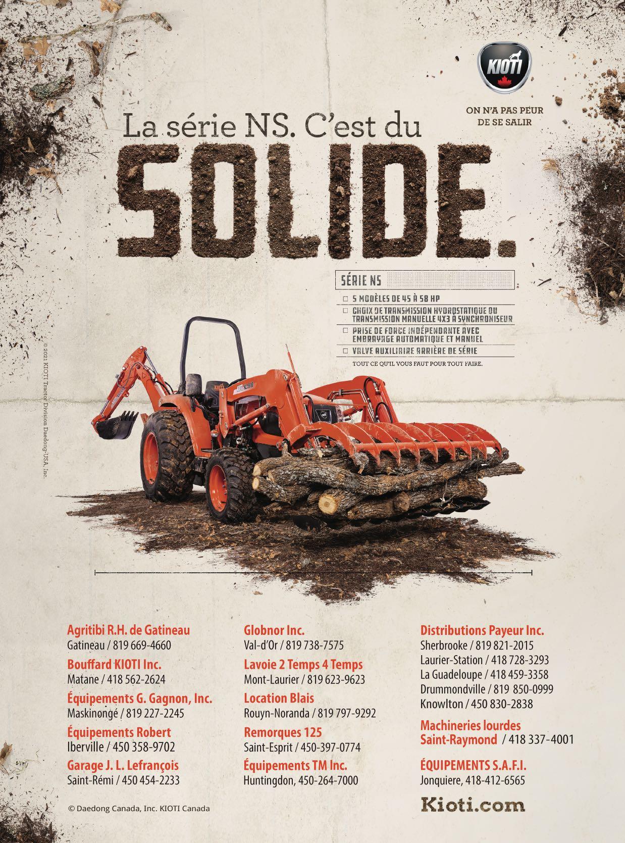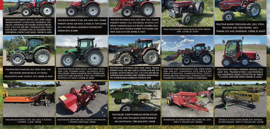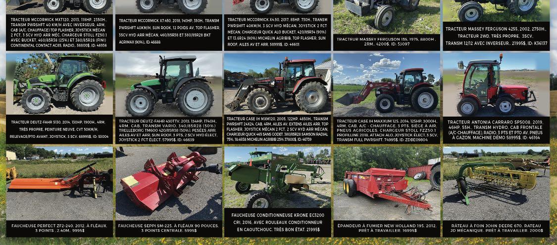 Aidez-nous à vous offrir toujours plus, courrez la chance de remporter une carte cadeau Visa prépayée de 25$ en répondant à ce court sondage. ADJM 31 Agence Mécanique Courtney 36 Agrikom . . . . . . . . . . . . . . . . . . . . . . . .47-73 Agritex 28-29 Annonces classées 32 Antonio Carraro Canada . . . . . . . . . . . .47 Atelier de soudure DJF . . . . . . . . . . . . . .73 Aulari 16-50 Bâtiment Archidrome 42 Baumalight . . . . . . . . . . . . . . . . . . . . . . .2-3 Cahier Vente de garage . . . . . .45 à 51 Caroline Harbec - courtier immobilier 71 Chasse-Neige 53 Chauffage Bernard Bisson . . . . . . . . . . .14 Cimi . . . . . . . . . . . . . . . . . . . . . . . . . . . . . .71 Claude Joyal inc. 15 Compagnie Normand 84 Consulligence ltd . . . . . . . . . . . . . . . . . . .30 Cougar inc. / Fieldtek . . . . . . . . . . . . . . .64 CTA 72 Denis Rivest 53 DF Coffrages . . . . . . . . . . . . . . . . . . . . . . .14 DO Équipements 21 Drainage St-Jacques & Fils 30 Dynamique Technologie . . . . . . . . . . . .30 Elho . . . . . . . . . . . . . . . . . . . . . . . . . . . . . .27 Entreprise Delorme 52 Entreprises Sud-Ouest 38-39 Entretien idéal de ferme 14 Équip. de ferme usagés Jutras inc 31 Équip. Emily . . . . . . . . . . . . . . . . . . . . . . .16 Équip. G. Gagnon 67 Équip. J.D.R (Les) 34-35 Équip. Lavallée . . . . . . . . . . . . . . . . . . . . .53 Équip. Touchette . . . . . . . . . . . . . . . .76-83 Excavation Alain Lemay 26 Expo Champs 70 Fantini . . . . . . . . . . . . . . . . . . . . . . . . . . . .32 Fondation Provinciale inc. . . . . . . . . . .19 Fondations A. Lemaire (Les) 7 Fourche CYR 6 Garage Wendel Mathis inc . . . . .22-23-24 Groupe Alco . . . . . . . . . . . . . . . . . . . . . . .14 Groupe Horizon 69 Groupe RPS 5 Guillet Machinerie Agricole . . . . . . . . .33 Harco AG . . . . . . . . . . . . . . . . . . . . . . . . . . .8 HLA Attachments 20 Inotrac 17 Jean-René Lafond . . . . . . . . . . . . . . . . . . .9 Joskin 37 Kioti 62 Léon Plante . . . . . . . . . . . . . . . . . . . . . . . .69 LS Tractor . . . . . . . . . . . . . . . . . . . . . . . . . .6 M.C.I. & Thorco 51 Mach. Y. et C. Vincent 48-49 & 54-60 Machinerie D.M.G. 12 Machinerie Lépine . . . . . . . . . . . . . . . . .18 Machinerie Agricole LS . . . . . . . . . . . . .37 Machinerie S. Lemay 43 Machineries Agricoles St-Césaire 13 Machineries Nordtrac . . . . . . . . . . . .51-66 McCormick 68 Meyer Farm Equipment 64 Mot de la présidente . . . . . . . . . . . . . .4 Pneus & machineries R. Thériault . . . .65 Poly-Mat 61 Quivogne 5 Raymond Lasalle . . . . . . . . . . . . . . . .46-63 Roulement Techno inc 10 S. Houle 44 S.G.L. Distribution inc . . . . . . . . . . . . . .25 SaMASZ . . . . . . . . . . . . . . . . . . . . . . . . . . .66 Samson Canada 74-75 SM Audet Équipement . . . . . . . . . . . . . .53 Structure d'acier Turgeon . . . . . . . . . . .11 Structure d'acier Ver-Met 21 Toiles industrielles de Beauce 67 Top Lift . . . . . . . . . . . . . . . . . . . . . . . . .40-41 Tube Line mfg 69 Tuyaux André Jetté 10