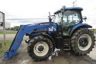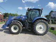 Tracteur New Holland T6.145, 2018, 2110H., transm 16X16, HP pto 105, 3 scv double, cab, A/C + chauffage, ailes av, pneus mitas 380/85R28 et 460/85R38, essuie-glace av et arr, radio, gyrophare, susp cab, siège dynamic, confort chauffant, chauffe-moteur, joystick.