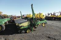 Planteur JD 1750, 8 rangs, semis direct, à doigts, tasse résidus, engrais liquide, disques engrais simples, John Blue pompe à piston, moniteur Computer trac 150.