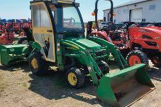 Tracteur John Deere 5090R, 2019, 633.5H., transm IVT, 3 scv, cab, chauffage, A/C, ailes avant, ensemble de poids avant, souffleur Normand 92'' visses rouges (valeur 9000$).