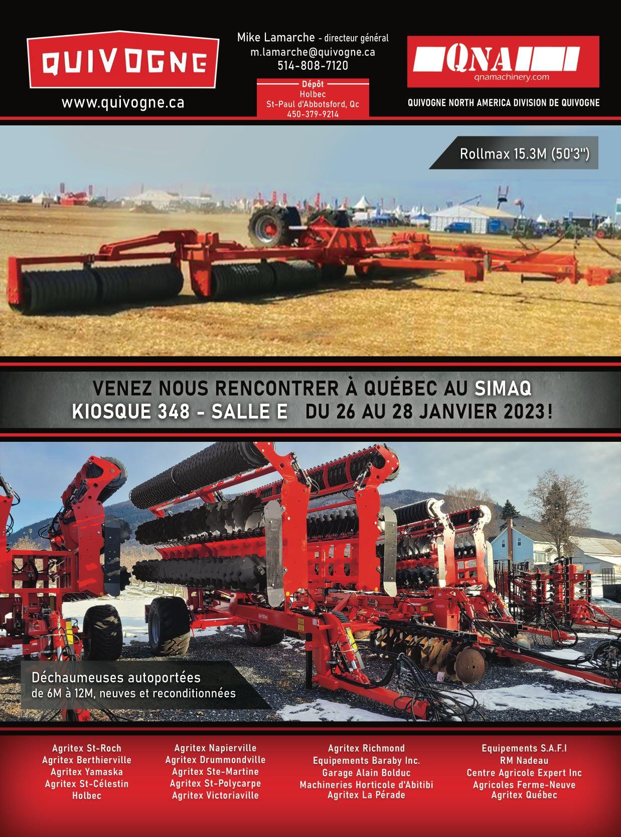 MAREVUEAGRICOLE.COM février 2023 4 ADJM 5 Agence Mécanique Courtney 36 Agrikom . . . . . . . . . . . . . . . . . . . . . . . . . . .60 Agri-Mart 74 Agritex 28-29 Annonces classées 76 Aulari . . . . . . . . . . . . . . . . . . . . . . . . . . . . . .9 Bâtiment Archidrome . . . . . . . . . . . . . . .71 BaumalighT 58 Bédard Agriculture 31 CASA . . . . . . . . . . . . . . . . . . . . . . . . . . . . . . .8 Chauffage Bernard Bisson . . . . . . . . . . .14 Claude Joyal inc. 15 Concours de dessin S.I.M.A.Q. 48 Construction Dannick Chaput . . . . . . .72 Consultants Lemay & Choinière . . . . .69 Cougar inc. 39 DF Coffrages 14 Distribution ADLS . . . . . . . . . . . . . . . . . . .4 DO Équipements . . . . . . . . . . . . . . . . . . .78 Drainage Ostiguy 10 Dynamique Technologie 67 ECKO LOGISTIQUE 61 Elho . . . . . . . . . . . . . . . . . . . . . . . . . . . . . .27 Entreprise Delorme . . . . . . . . . . . . . . . .73 Entreprises Sud-Ouest 42-43 Équip. Beauchesne 64 Équip. CCMP . . . . . . . . . . . . . . . . . . . . . .26 Équip. de ferme Miro . . . . . . . . . . . . . . .24 Équip. de ferme Tardif 68 Équip. de ferme Turgeon Encart Équip. de ferme usagés Jutras inc 70 Équip. Emily 48 Équip. G. Gagnon 77 Équip. Guillet 66 Équip. J.D.R (Les) 34-35 Équip. Lavallée 78 Excavation Alain Lemay 38 Fantini 14 Fondation Provinciale inc. 19 Fondations A. Lemaire (Les) 7 Fort Métal 85 Fourche CYR 72 Garage J.L. Lefrançois 18 Garage Wendel Mathis inc 22-23-81 GB Équipement 6 Goulet & Fils inc. 20 Grasshopper 70 Grison 62 Groupe Alco 14 Groupe RPS 5 Guillet Machinerie Agricole 33 Hakmet 21 Harco AG 57 Haybuster 59 HLA-Snow 30 Inotrac 17 Kioti 44-45-Encart LA SOLE 24 Léon Plante 63 LS Tractor 63 M.C.I. & Thorco 37 Mach. Yvon et Claude Vincent 50-56 Machinerie CH 2-3 Machinerie D.M.G. 79 Machinerie Lépine 65 Machinerie S. Lemay . . . . . . . . . . . . . . .41 Machineries Agricoles St-Césaire . . . .13 Machineries Alex Corriveau . . . . . . . . .75 Marindustrial 49 McCormick 16-Encart Metal Pless 6 Meyer Farm Equipment . . . . . . . . . . . . .67 MFR du Granit (CSSHC) . . . . . . . . . . . .12 Mot de la présidente . . . . . . . . . . . . . . . . .4 PMIag (Güttler Canada) 69-85 Poly-Mat 80 Quivogne 40 Raymond Lasalle . . . . . . . . . . . . . . . . . . .84 Roulement Techno inc . . . . . . . . . . . . . .10 S. Houle . . . . . . . . . . . . . . . . . . . . . . . . . . .32 S.G.L. Distribution inc 25 S.I.M.A.Q. 88-Encart SaMASZ 77 Samson Canada . . . . . . . . . . . . . . . . .86-87 Semoir Maggy . . . . . . . . . . . . . . . . . . . . .37 SM Audet Équipement 72 Structure d'acier Ver-Met 49 Symbionature 68 Systèmes Polycrete 82 Teamco . . . . . . . . . . . . . . . . . . . . . . . . . . . .60 Toiles industrielles de Beauce . . . . . . .11 Top Lift 46-47 Traction Plus 78 Tube Line mfg 83 INDEX