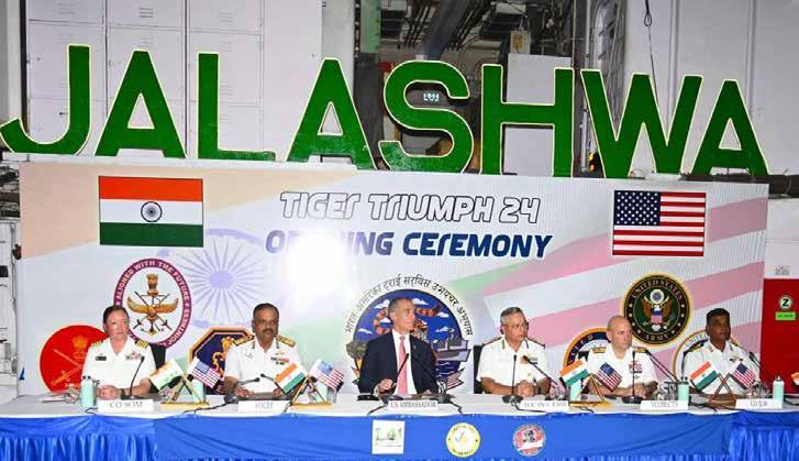 The Opening Ceremony of the Bilateral Tri-Service Humanitarian Assistance and Disaster Relief (HADR) Amphibious Exercise between India and US, Tiger Triumph, was held onboard INS Jalashwa 19 March. The Exercise represents the robust strategic partnership between both countries and aims to share best practices and Standard Operating Procedures in undertaking multinational HADR operations.