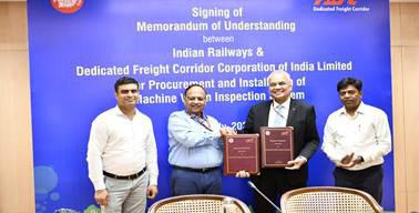 In a major step towards enhancing smarter and safer railway operations, Indian Railways has signed a Memorandum of Understanding (MoU) with the Dedicated Freight Corridor Corporation of India Limited (DFCCIL) to introduce AIdriven inspection technology aimed at transforming train safety and maintenance practices. The MoU, signed at Rail Bhawan by Sumit Kumar, Director (Project and Development), Railway Board, and Jawahar Lal, GGM (Mechanical), DFCCIL, paves the way for the deployment of the Machine Vision Based Inspection System (MVIS), a cutting-edge, AI- and machine learning-based tool designed to automate inspection of moving trains. The MVIS technology works by capturing high-resolution images of the undergear of trains in motion.