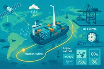 Just-In-Time (JIT) arrival is another huge win. Instead of rushing to a port and waiting with the engines running, AI helps a ship slow down during the trip so it gets to the harbor just when a berth is free. One study indicated that JIT can save fuel use and CO₂ by roughly 14% every trip. That’s a lot of money saved by a simple idea: don’t rush merely to wait.