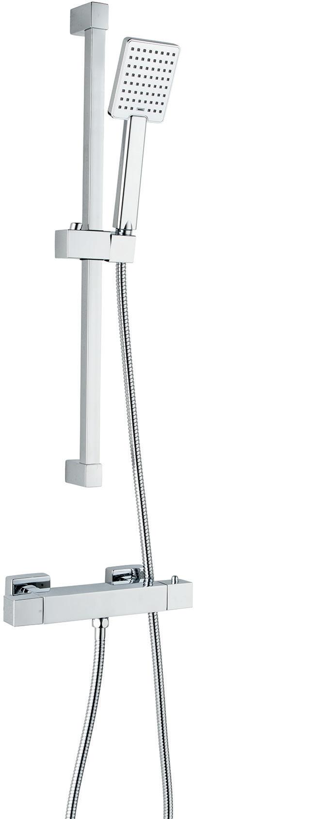 PREMIERTECH SQUARE COOL TOUCH THERMOSTATIC SHOWER VALVE with integrated diverter, square showerhead and telescopic riser kit