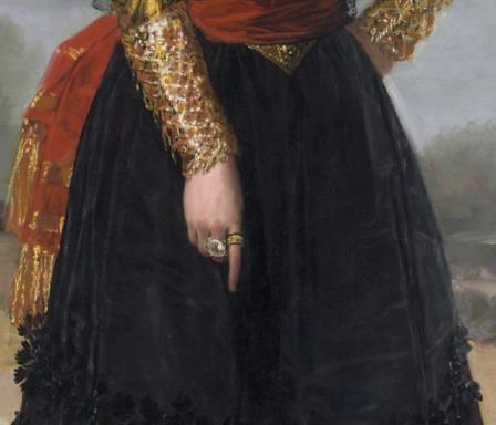 faptul că este îmbrăcată cu o ținută la modă, de genul celor pe care Goya adora să le picteze. Și cât de fin este brodată jumătatea inferioară a rochiei ei lungi! Goya vede toate acestea și le pune în valoare.
