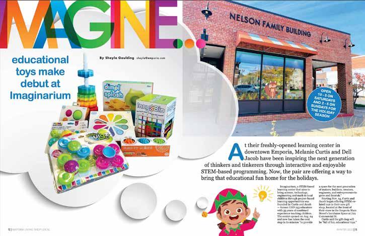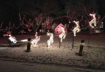 Quite likely the longest running and most expansive Christmas yard display in Em- poria’s history, Ron Slaymak- er and his late-wife Shirley, have been spreading holiday cheer by transforming their yard into a Christmas won- derland since they built their home on what was then the outskirts of town in 1963. With nearly 200 strands of lights and a vast collection of eclectic decorations, featuring both handcrafted and unique pieces from Emporia’s past, the home has become an icon in town during the holiday season for nearly six decades. A lot has changed in the neighborhood since the Slay- makers started developing the Christmas tableau 60 years ago. When he and Shir- ley first started, the roads around their house were dirt and they were only one of three houses in the area. To- day, their house is the center of the windy roads of Country Club Heights and it is still a regular stop for drivers from all over town making their an- nual tour through Emporia’s best holiday Passers-bydisplays. will certainly find the traditional Christmas symbols in the Slaymakers yard, like Baby Jesus, the Na- tivity, and Santa, his reindeer and Rudolph; but they won’t see inflatables, or moving characters often synonymous with much of today’s holiday merchandise. That’s because the Slaymakers have always loved and appreciated an- tique and vintage items that are reminders of yesteryear. “Both Shirley and I really gravitated to old things,” Ron said. “We grew up loving an- tiques.” One of the focal points of the Slaymaker Christmas display is a life-size vintage plywood Nativity scene, featuring cam- els, the town of Bethlehem and plenty of donkeys and sheep. The Slaymakers bought the hand painted set from New- man Department store when they went out of business in the late 1990s. Ron isn’t quite sure of it’s history but speculates that the Nativity was once used in the annual Emporia Schools Christmas Program in the 70s and 80s. Other pieces of the yard dis- play include an original black antique sleigh pulled by nine flying reindeer with Rudolph in the lead, of course.