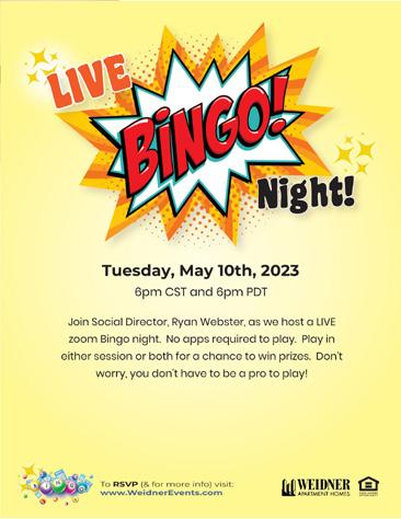 Print and display to distribute the following flyers for the virtual events you’d like to promote at your community. All Class start times are listed in Pacific or Central Standard time zones. Refer inquires to Events@weidner.com