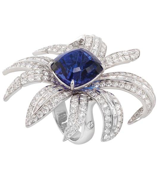 Ring featuring tanzanite (17. 38 ct) and diamonds. Crafted in 18-karat white gold.