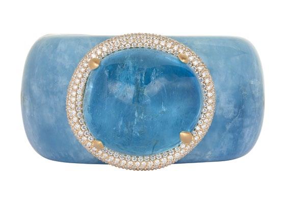 Cuff featuring aquamarine (176.65ct), aquamarine (1,089.10ct), and diamonds. Crafted in 18-karat yellow gold.
