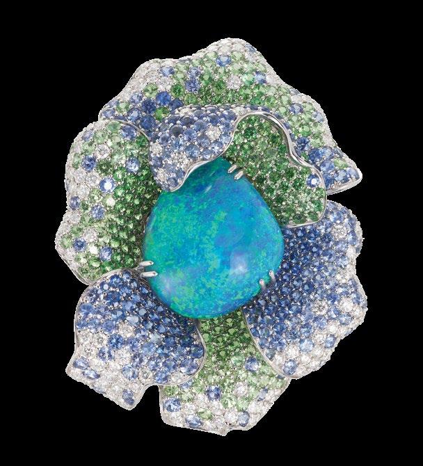 Ring featuring Australian black opal (37.52ct), diamonds, blue sapphires and tsavorites. Crafted in 18-karat white gold.