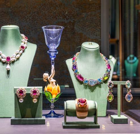 Collier featuring green tourmalines (63.42ct), peridots, Paraiba tourmalines, pistachio pearls, diamonds, blue sapphires and tsavorites. Crafted in 18-karat yellow gold.