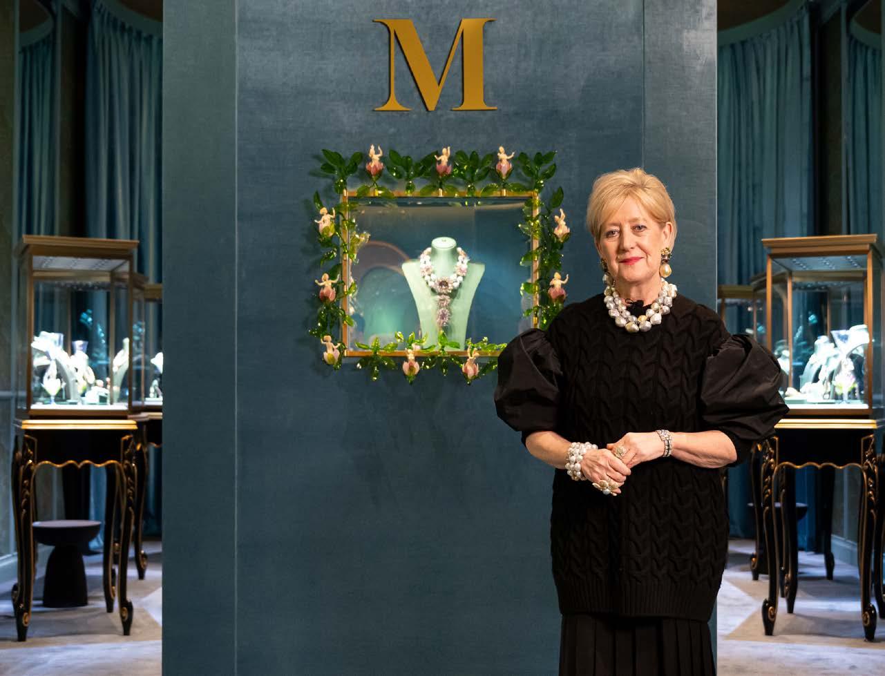 Collier featuring eight significant tourmalines (total 240.56ct) including a gem of 65.85ct at the centre of the piece, along with an impressive collection of twenty-seven large Australian South Sea baroque pearls. The twenty-six pearls in the collier’s double strands measure 15-20mm, while a single, particularly rare example measuring 21 x 32mm is placed as the focal point beneath the hero tourmalines. Bloem is completed with white diamonds, brown diamonds, blue, pink and purple sapphires, pink tourmalines, amethysts and rubellites.