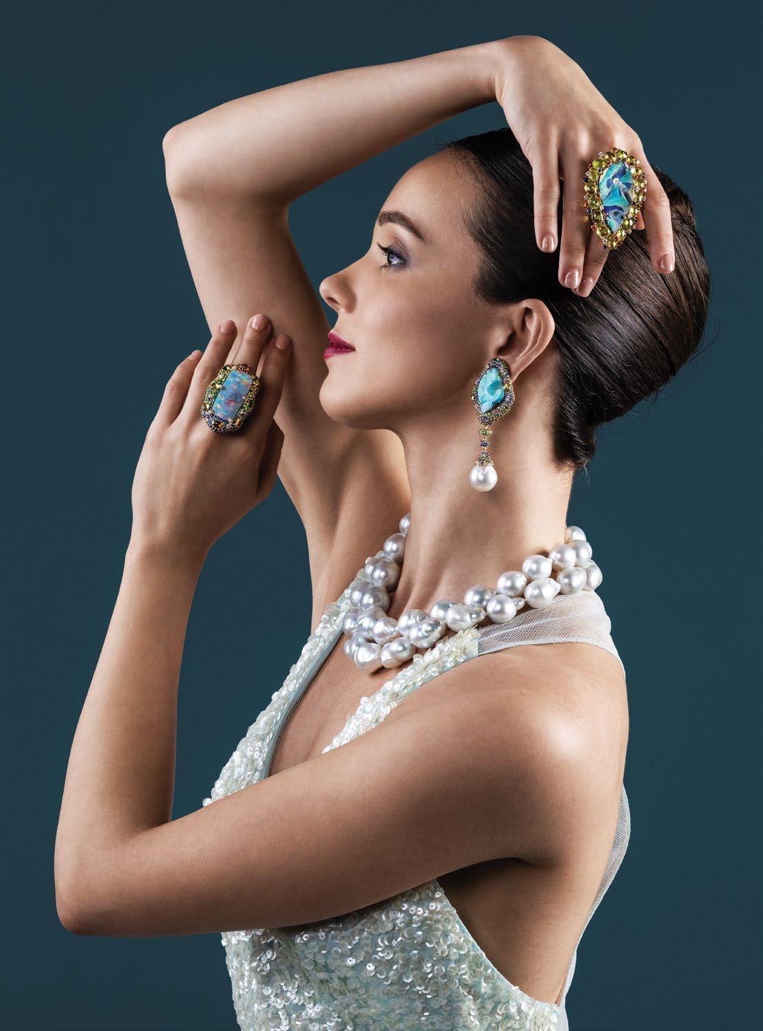 While Australian boulder opals and South Sea pearls often form the centrepieces of her works, Margot is equally adept at harnessing the colour and lustre in precious gems to be the stars in her art. What sets her apart are not only her artistic vision but also her