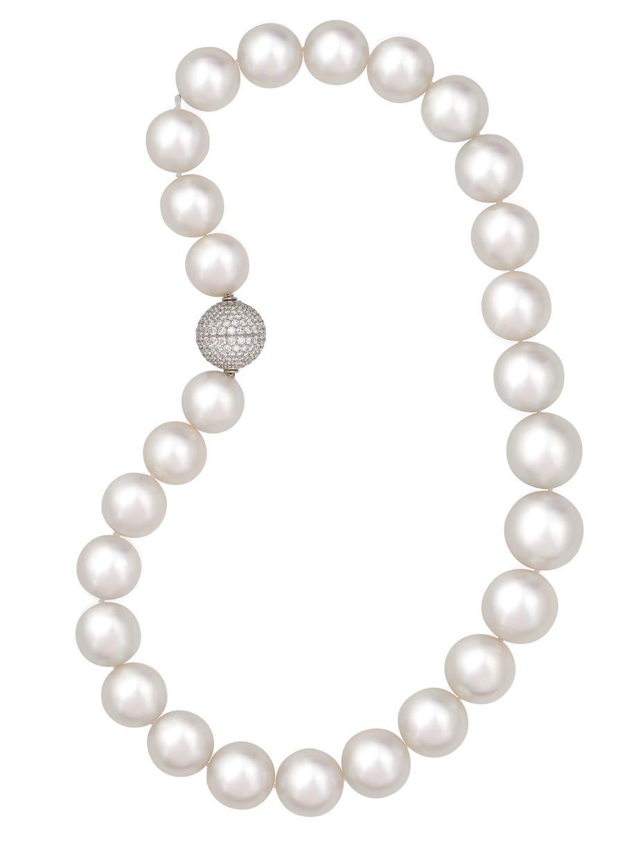 Necklace featuring Australian South Sea pearls and diamonds. Crafted in 18-karat white gold. Length: 48 5cm