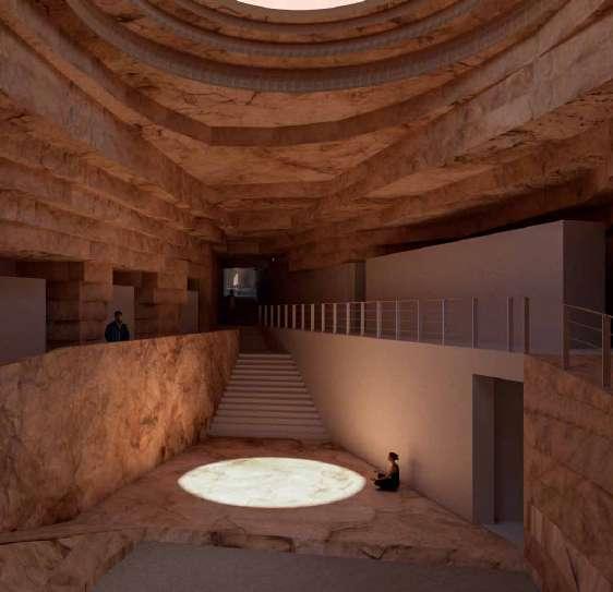 IN THIS PROJECT, THE EXTERIOR REMAINS INTACT, WITH RESTORED CONSTRUCTION AND AN EXTENSION INTEGRATED INTO THE MOUNTAIN, UTILIZING ITS NATURAL FEATURES AND MAINTAINING THE ROCK’S APPEARANCE. THE ARIDITY OF THE ROCK CONTRASTS WITH THE SOFTNESS OF PLADUR®, TRANSITIOINING FROM A PLASTERBOARD-CLAD SPACE TO A DOMINANT, PRE-EXISTING ROCK ENVIRONMENT. THIS PROPOSAL EMBODIES THE ESSENCE OF DUALITY: THE COLD OF NATURE AND THE HUMAN WARMTH, THE NANOMETRIC SCALE VERSUS THE SCALE OF THE MOUNTAIN, EMPTINESS VERSUS MASSIVENESS, AND PLADUR® VERSUS ROCK. THE DESIGN INVERTS THE MOUNTAIN, TRANSFORMING ITS NEGATIVE SPACE INTO A POSITIVE ONE, ALLOWING ENJOYMENT EVEN IN ADVERSE WEATHER CONDITIONS AND OFFERING CLIMBERS A NEW DIMENSION OF EXPERIENCE.