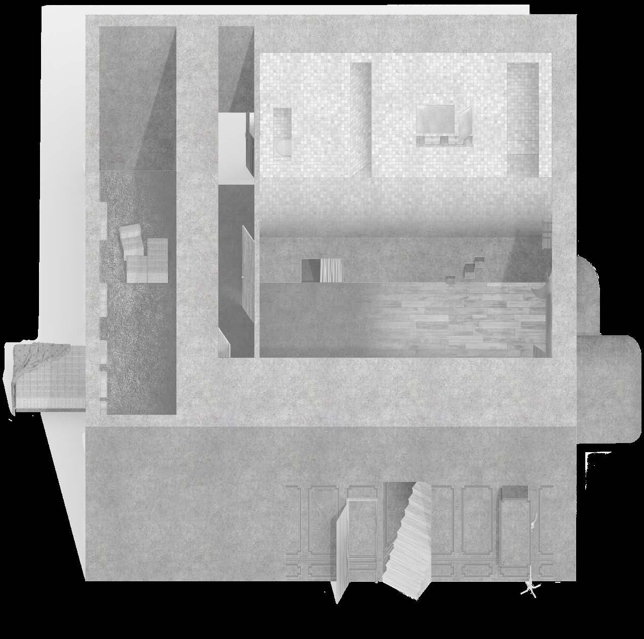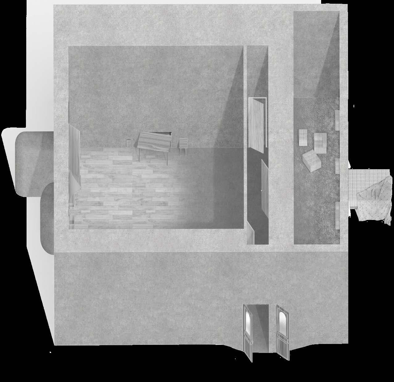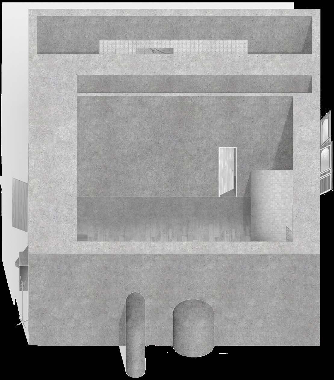 The overarching architectural motif, characterized by a concrete structure with varying wall thicknesses, symbolizes the intricacies and imperfections of human memory, where remnants of the forgotten persist. Illumination from carefully positioned skylights above each space serves not only to illuminate these cherished memories but also to guide occupants through the otherwise dimly lit environment, traversing from one wall to the next.