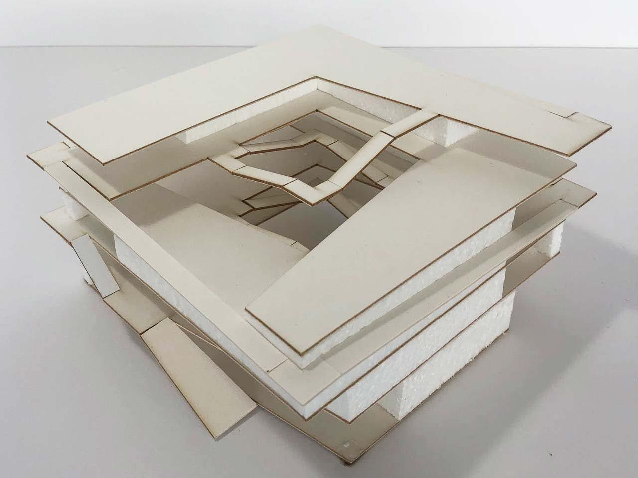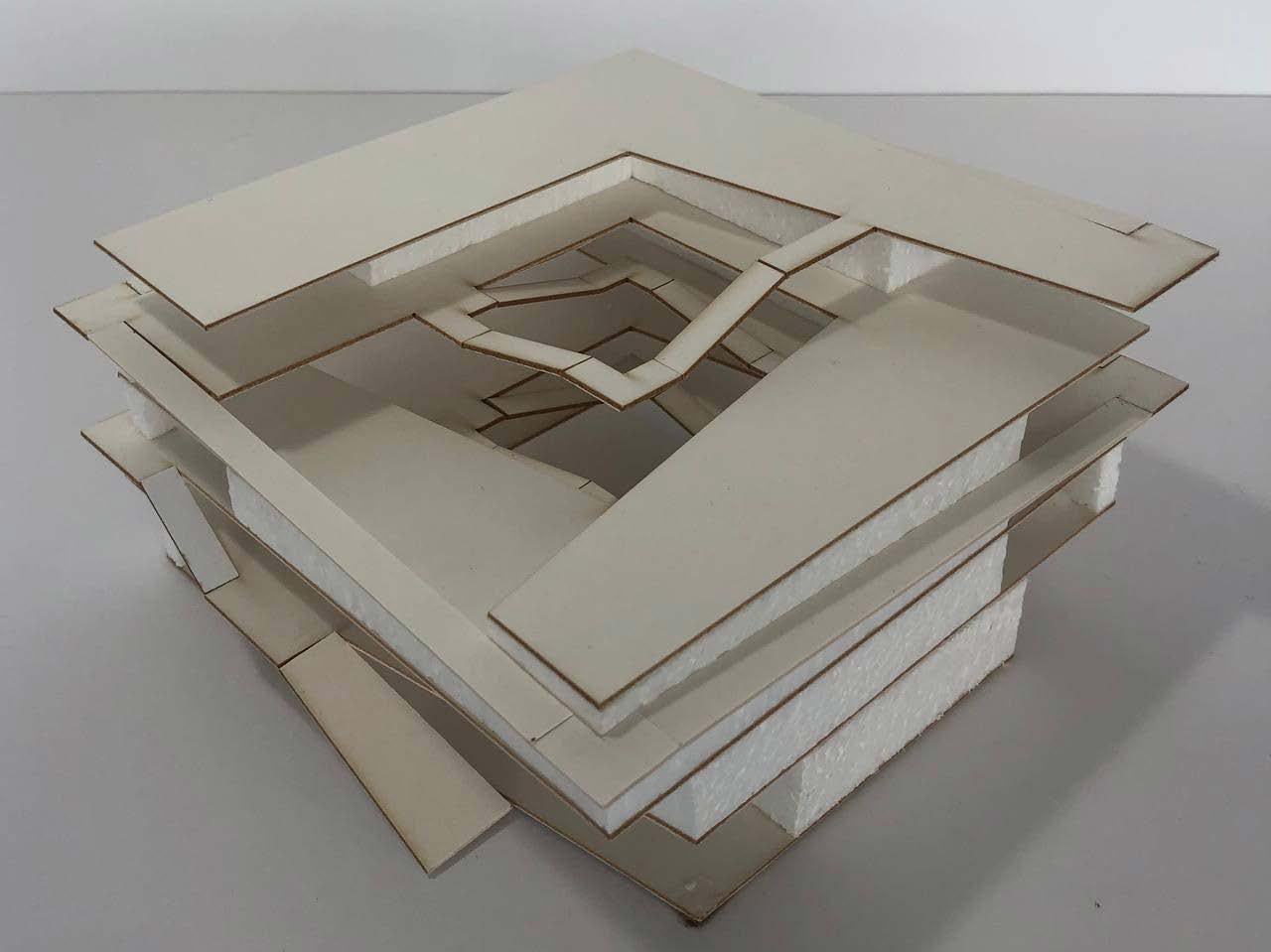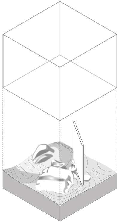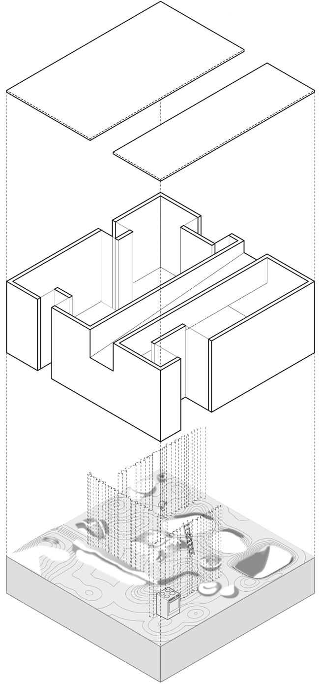 The overarching architectural motif, characterized by a concrete structure with varying wall thicknesses, symbolizes the intricacies and imperfections of human memory, where remnants of the forgotten persist. Illumination from carefully positioned skylights above each space serves not only to illuminate these cherished memories but also to guide occupants through the otherwise dimly lit environment, traversing from one wall to the next.