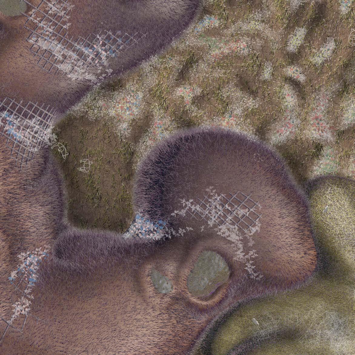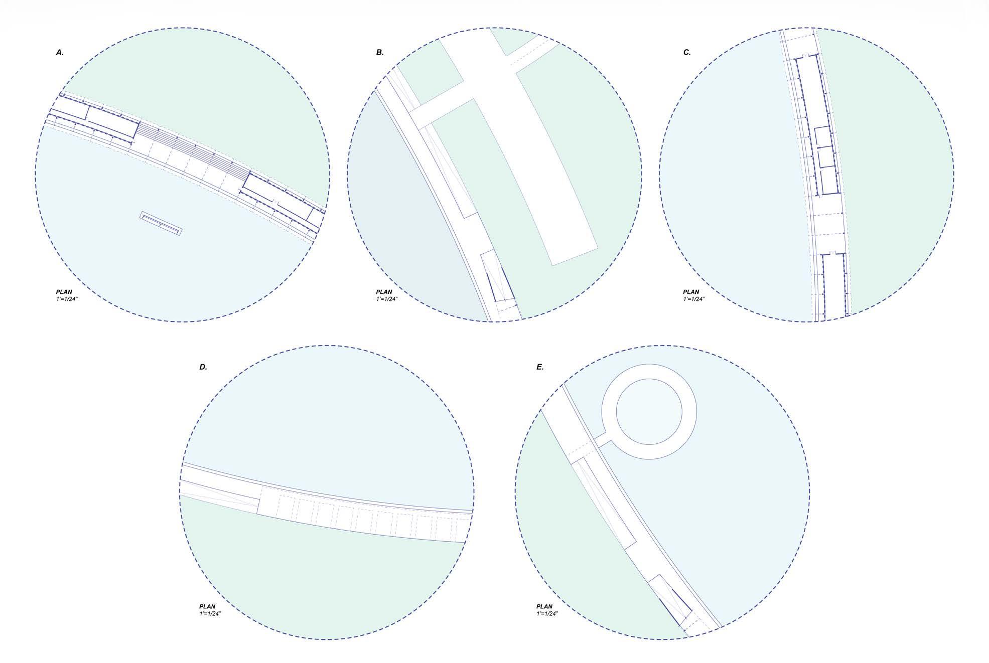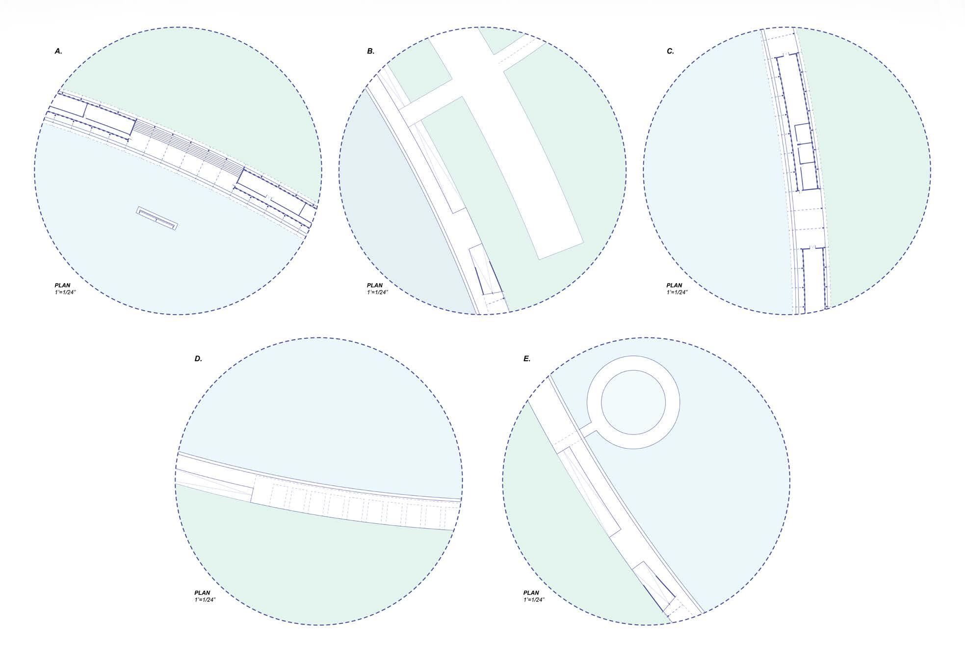 Encircling the site’s perimeter are elevated mounds that create and maintain an ambiance distinct from the surrounding urban environment, occasionally tapering to suggest points of ingress. A cohesive narrative emerges through the gradual mor-