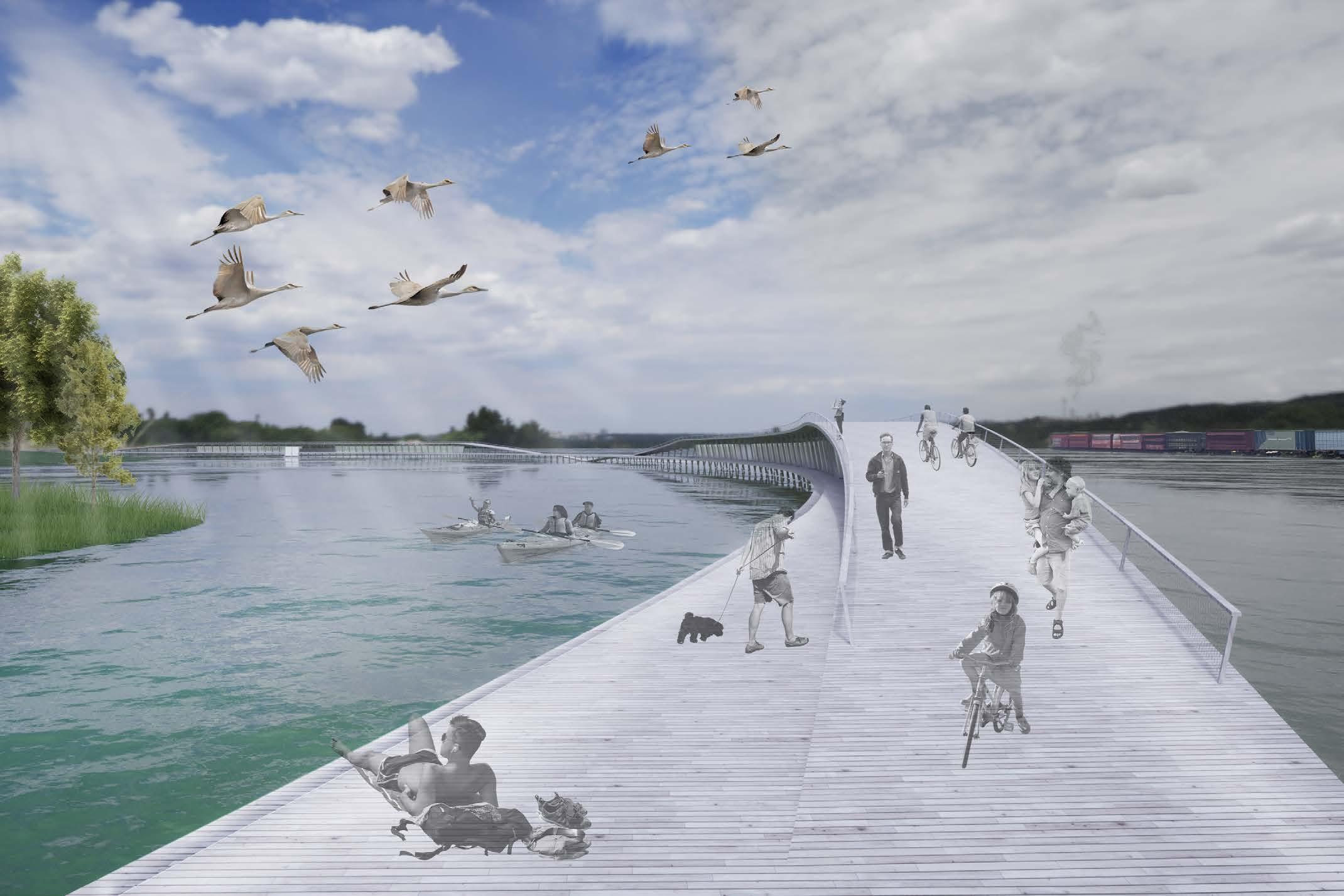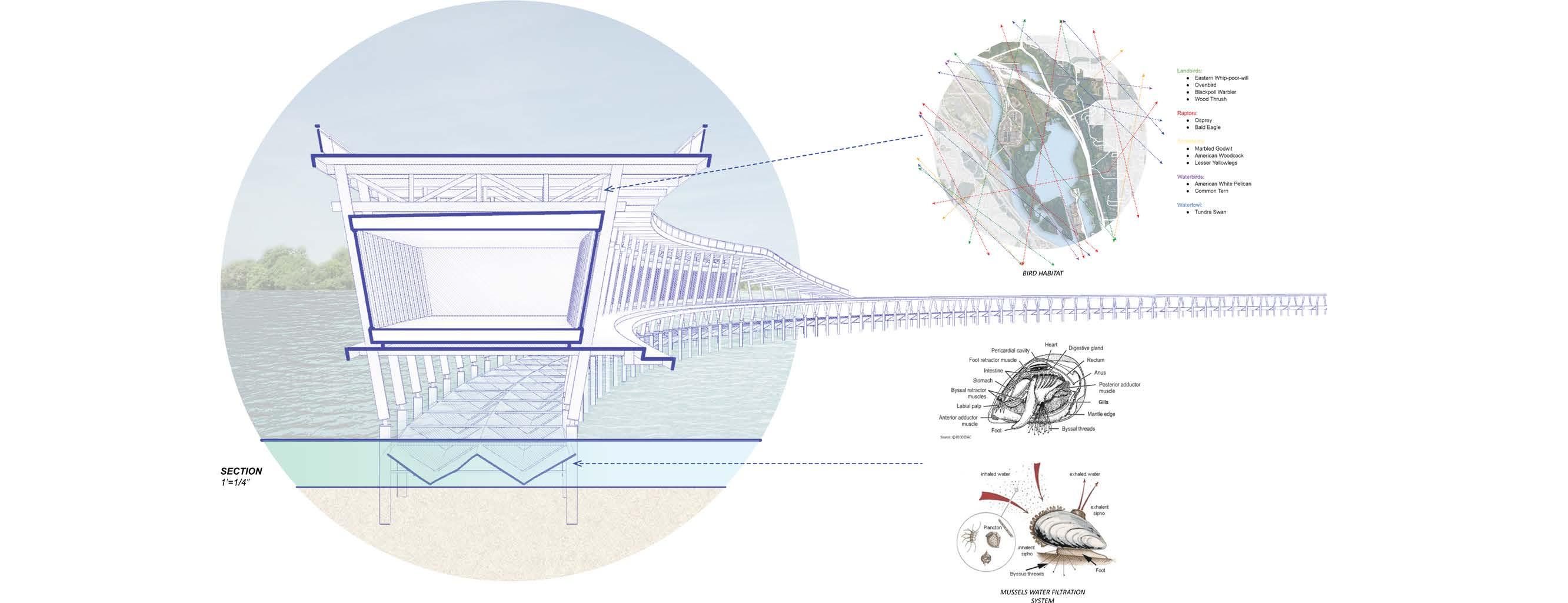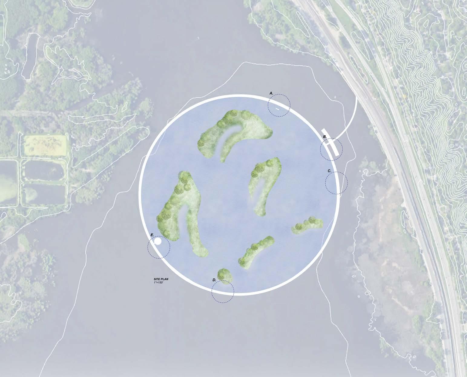 Situated on the Pig’s Eye Lake in Saint Paul, the project addresses the environmental challenges posed by the heavily polluted surroundings due to industrial and infrastructural activities. To effectuate a significant urban-scale environmental intervention, the initiative aligns itself with the ongoing efforts led by the Army Corps Engineers. These efforts aim to establish a series of strategically positioned artificial islands to safeguard the lake’s shoreline and provide a secure habitat for migratory birds and diverse flora and fauna.
