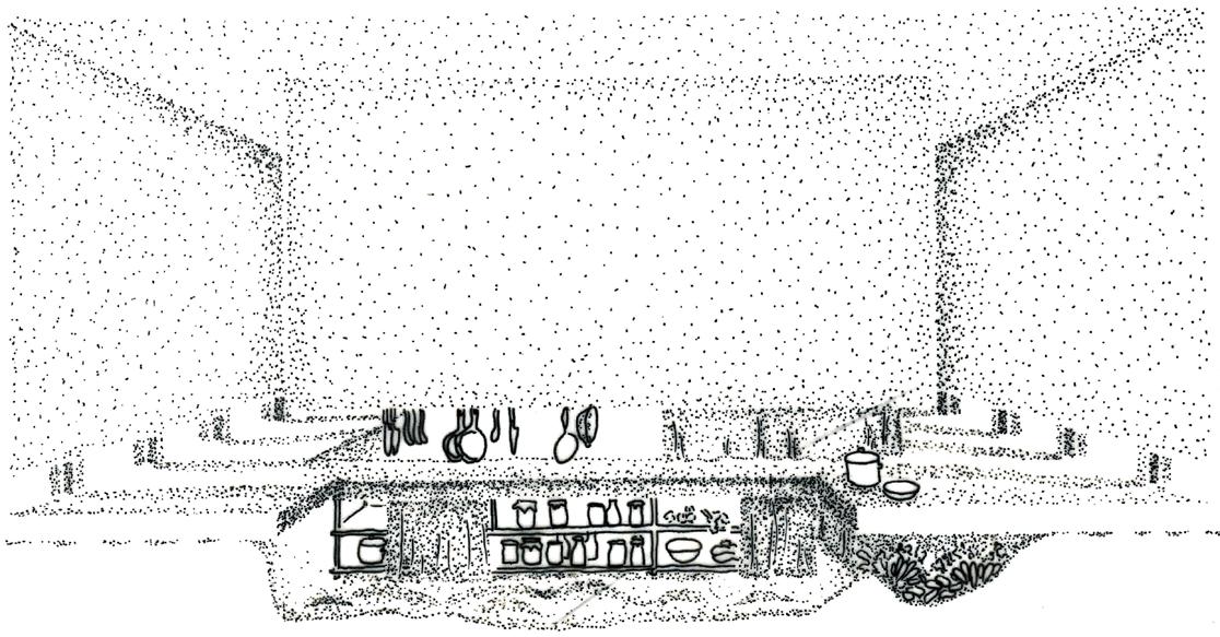 phological shifts, transitioning from voluminous and structured forms to more relaxed configurations, accommodating human, botanical, and faunal inhabitants within niches and recesses. Narrow apertures are deliberately maintained to preserve the nuanced climate of the interiors, resulting in a tactile experience as individuals navigate through the pliant exterior surfaces.