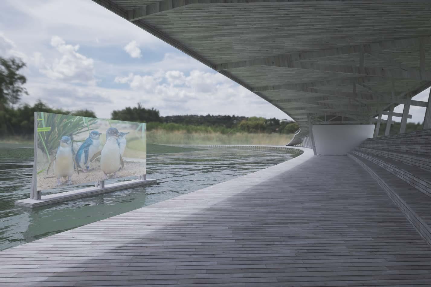 Above the water’s surface, there are educational and recreational facilities, such as exhibition spaces, classrooms, an outdoor cinema, a café, event venues, an outdoor swimming pool, and a boat dock. These amenities not only serve to attract visitors for leisure and recreational pursuits but also seek to educate them about the site’s history and the importance of environmental stewardship.