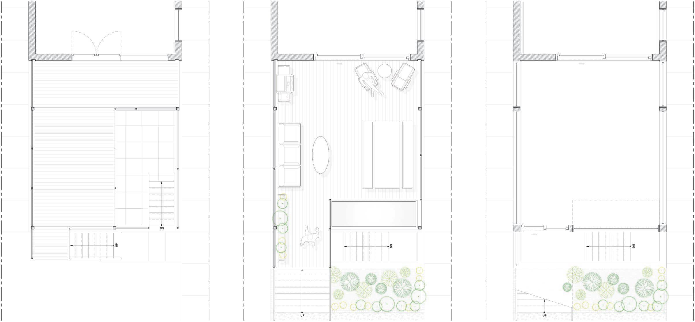 Similar meticulousness was applied to ground-level features, with a focus on privacy screening to shield on-deck activities from neighboring properties. Composed of delicately arranged thin wooden elements, these screens afford the required privacy while facilitating adequate airflow and light penetration. Furthermore, an additional railing was introduced below standard height specifications to ensure the safety and comfort of the client’s young children.