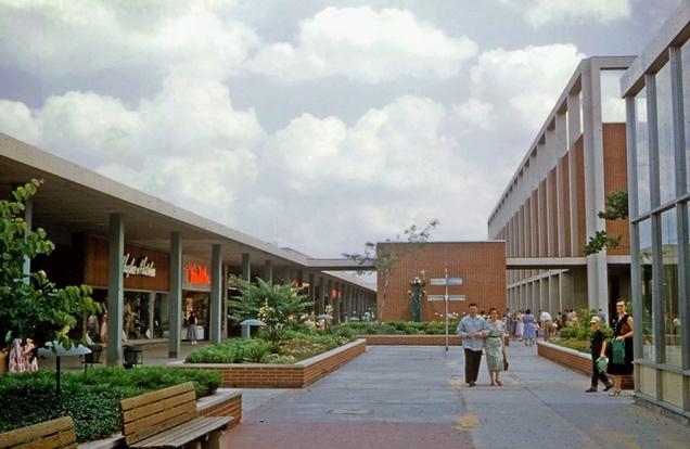 According to Oscar Webber’s opinion this was the key to the mall’s success, they forced their customers to walk past these small stores making them financially viable and therefore giving the mall a successful reputation. Gruen’s Northland shopping centre was extremely innovative. The project was at a massive scale and had a vase number of stores but as a native from Vienna, Austria Gruen thought the spaces between shops were meant to be used just like he remembers in downtown Vienna, with its busy cafes and outdoors. He did not incorporate grass, but he wanted his shops to blend and create a lively urban feel. He divided the spaces into different names such as: Great Lakes Court, Community Lane and Peacock Terrace just like the Hudson’s do in their stores. These were filled with fountains, artwork, landscaping, covered walkways and park benches for people to not just walk to their destination but enjoy their surroundings. The success of the mall made Dayton’s stores immediately offer Gruen a project where he would go and design the first fully enclosed, climate- controlled shopping mall in history with many features which are still found in modern malls today.