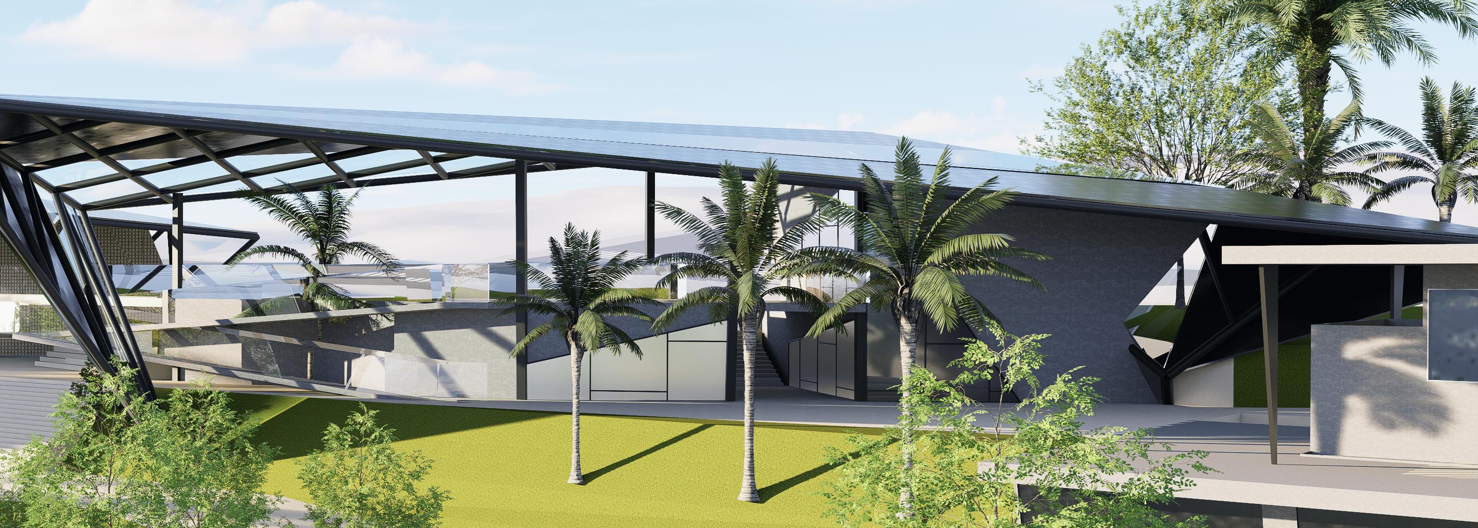 A lógica foi inspirada a partir das formas e dobraduras de origâmis, sendo dinâmica e com jogo de planos que dobram e se desdobram. Além disso, as conexões evidenciadas atuam como elementos de transposição entre os diferentes eixos do projeto. Desta forma, foi dividido o setor público do coletivo, com espaços cobertos e descobertos, garantindo uma harmonia entre as áreas livres, pátios e a conexão com a praça adjacente. experiência espacial dentro do conjunto escolar.