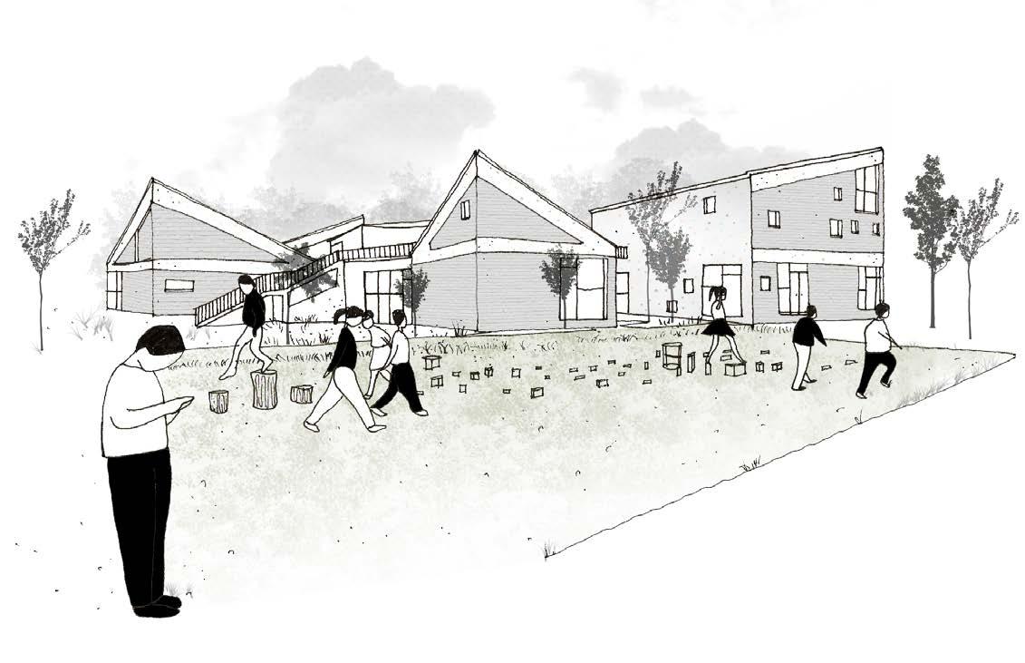 Projeto Jardim de infância Jiangsu Beisha. croqui em caneta nanquim com finalização em Photoshop.