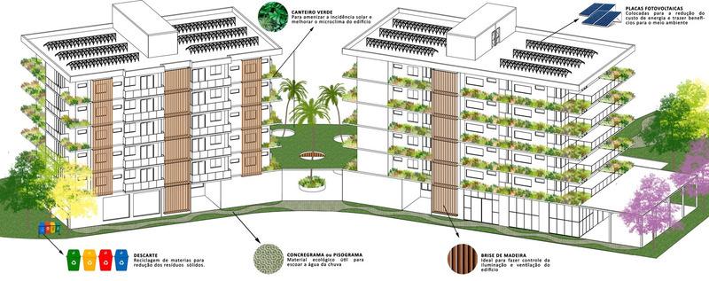As torres detém de soluções sustentáveis, como brises, captação de água da chuva, canteiros verdes, pisos permeáveis e energia solar