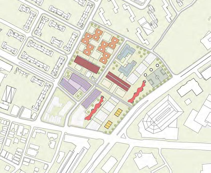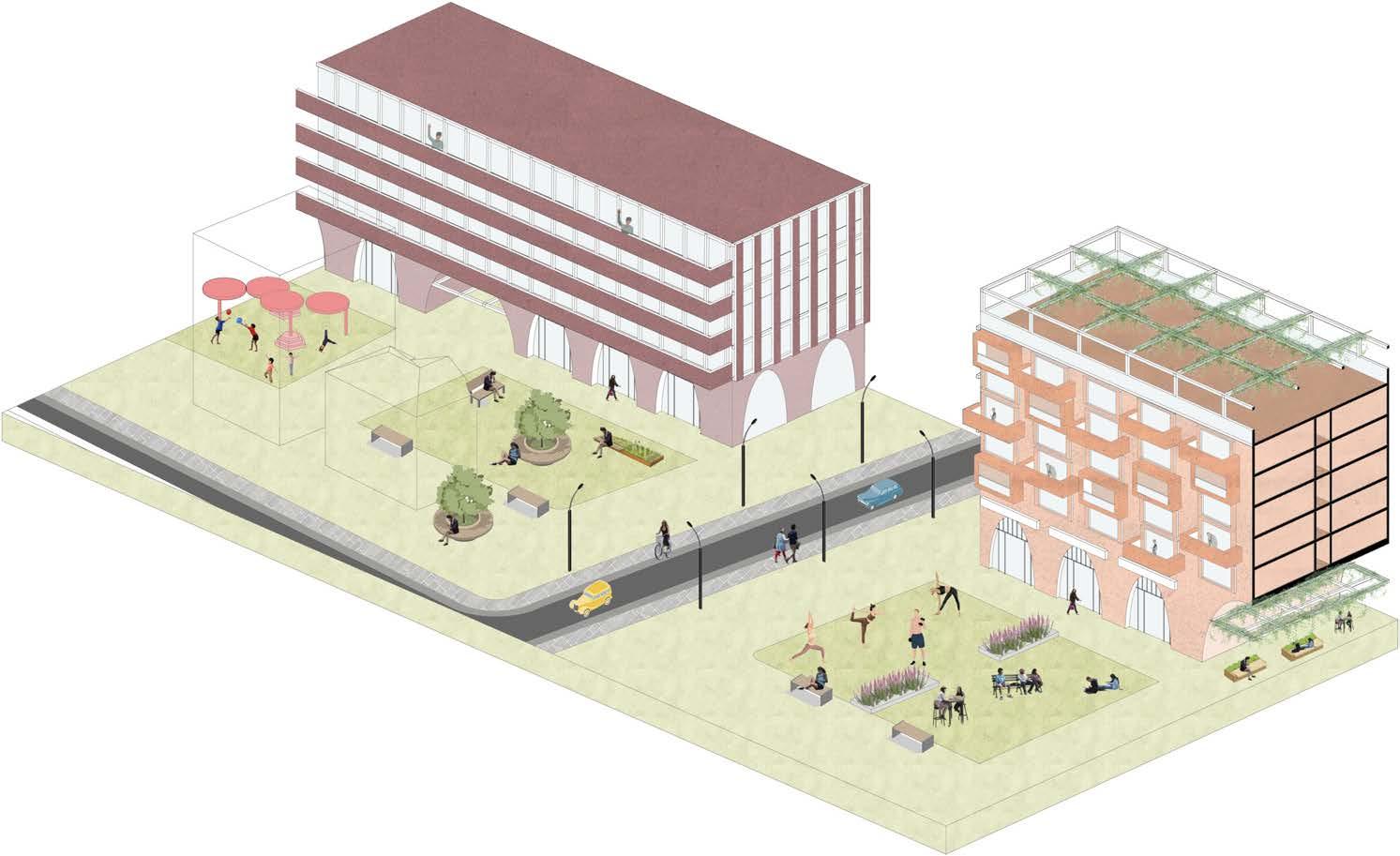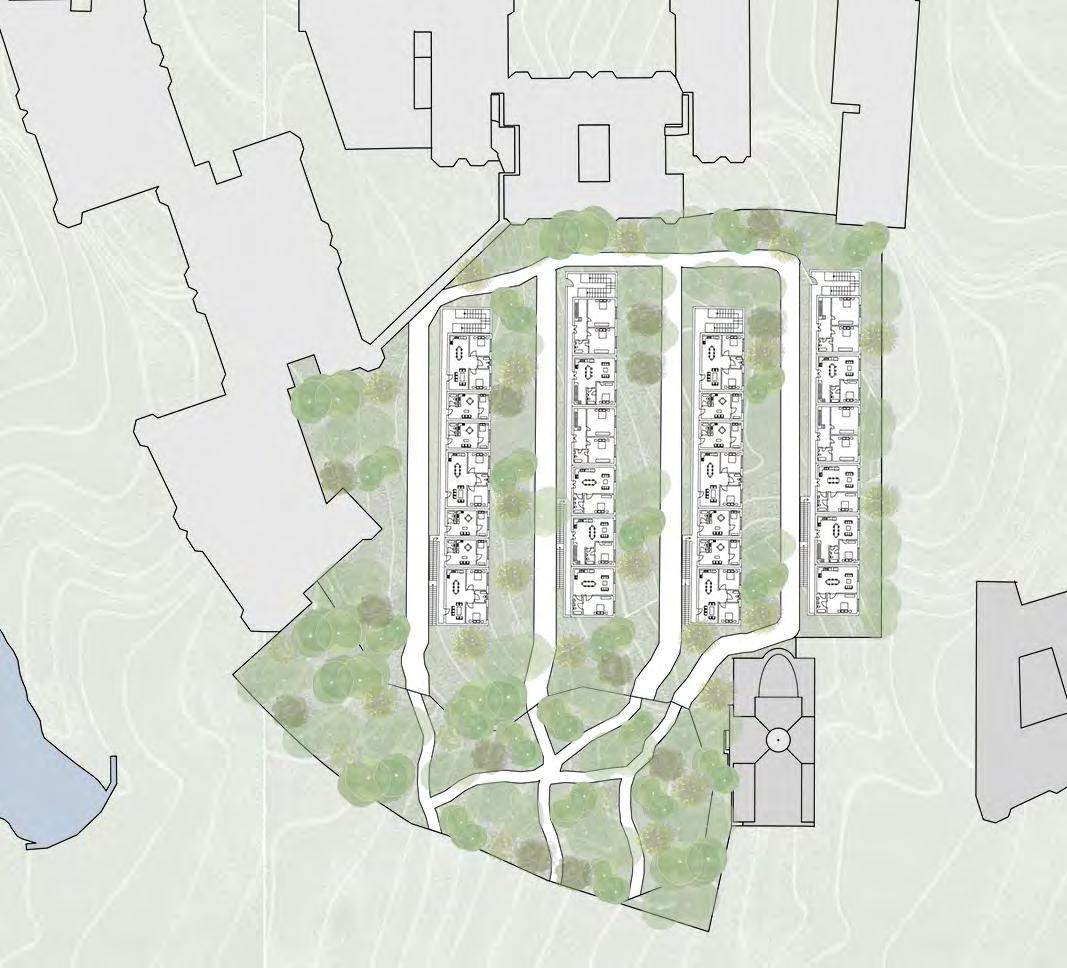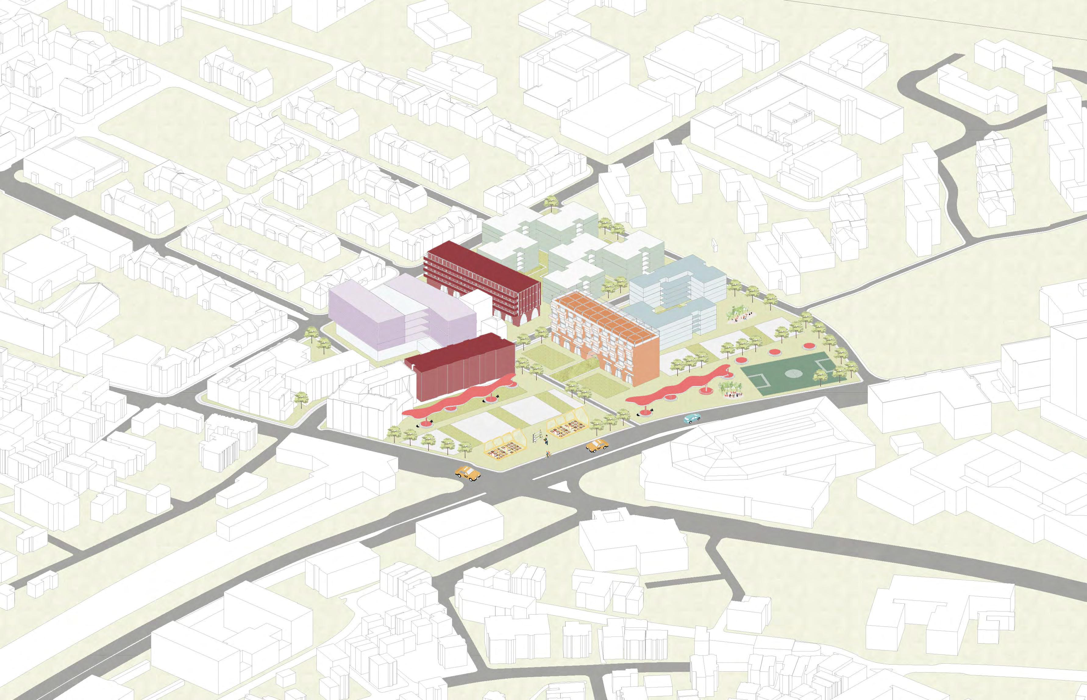 This project involved the redevelopment of a 16-acre site in the Mission Hill neighborhood of Boston. Surrounded by several universities, affordable housing complexes, an MBTA train station, and the Southwest Corridor, the site offered strong potential for a community-focused design. I proposed a mixed-use development that combines retail areas and affordable housing to foster community interaction, improve transit access, and expand green space. As part of the design, I focused on creating a student and faculty center block that could serve all nearby universities. Given the site’s strategic location, this space was envisioned as a central hub for academic collaboration, services, and student life.
