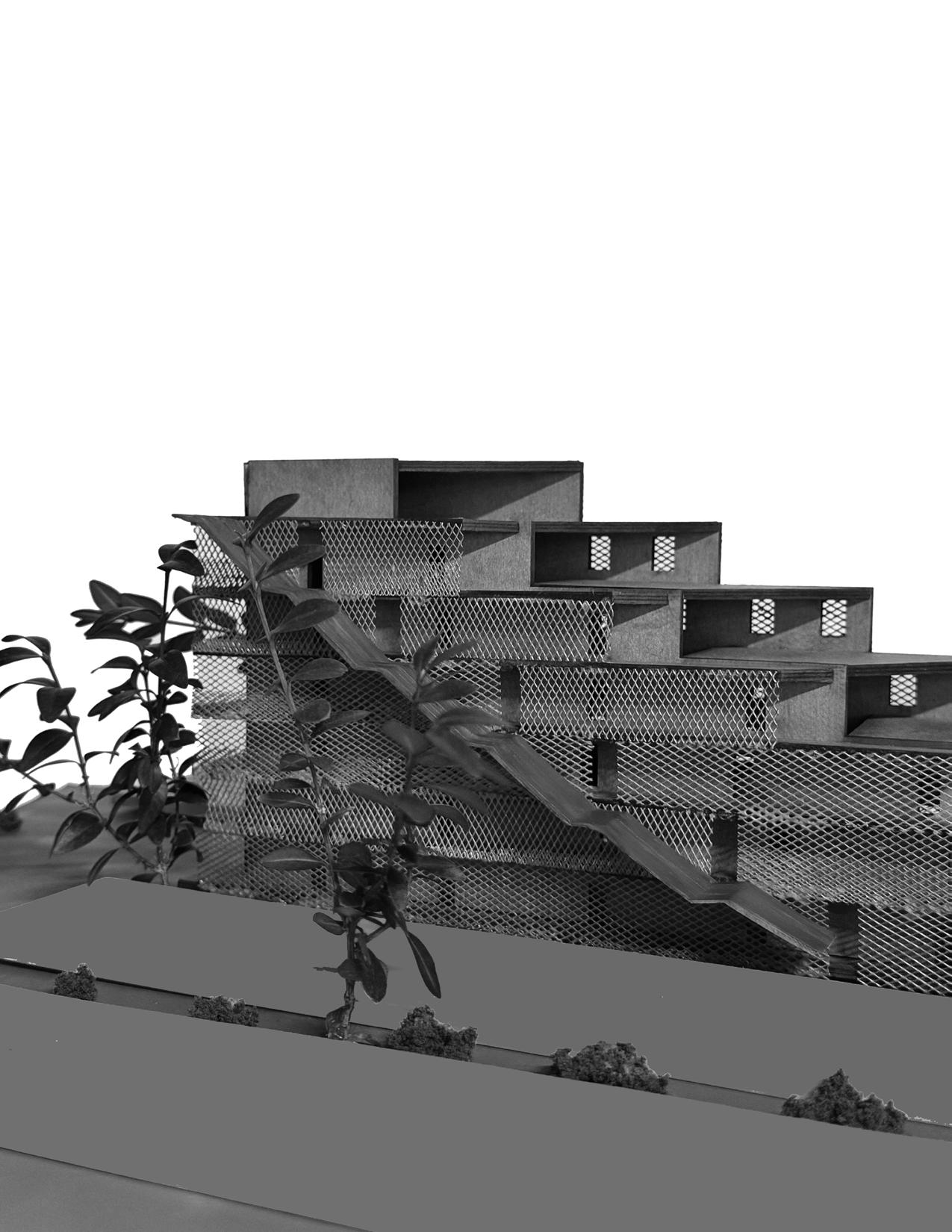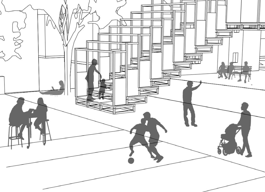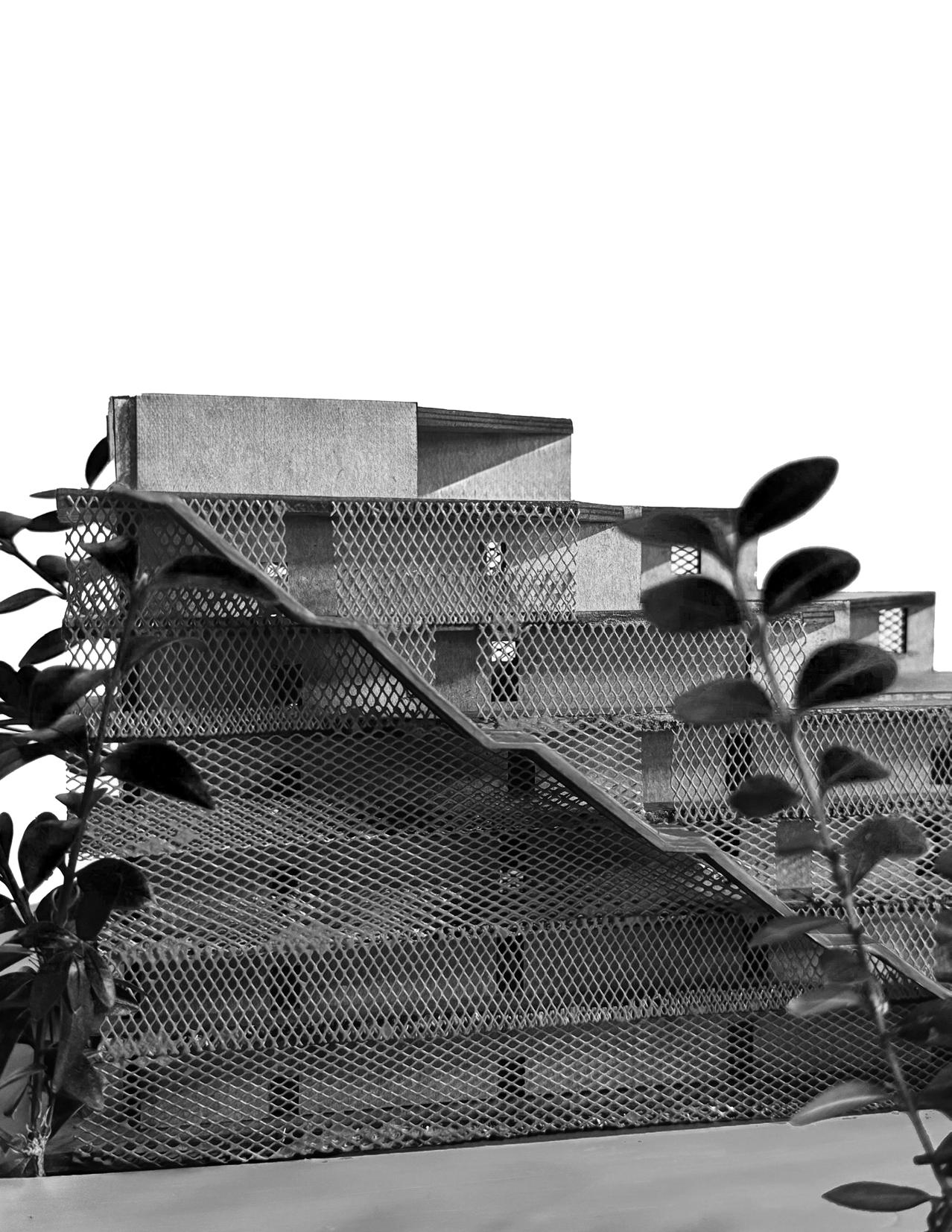 This pavilion is a dynamic stair that functions as both a bridge and gathering space, seamlessly connecting two sites while encouraging interaction with the surroundings. Designed for both movement and rest, it offers spaces to sit, walk, and immerse in nature. More than just a transitional pathway, it fosters reflection and connection, blurring the boundaries between built form and the natural environment.