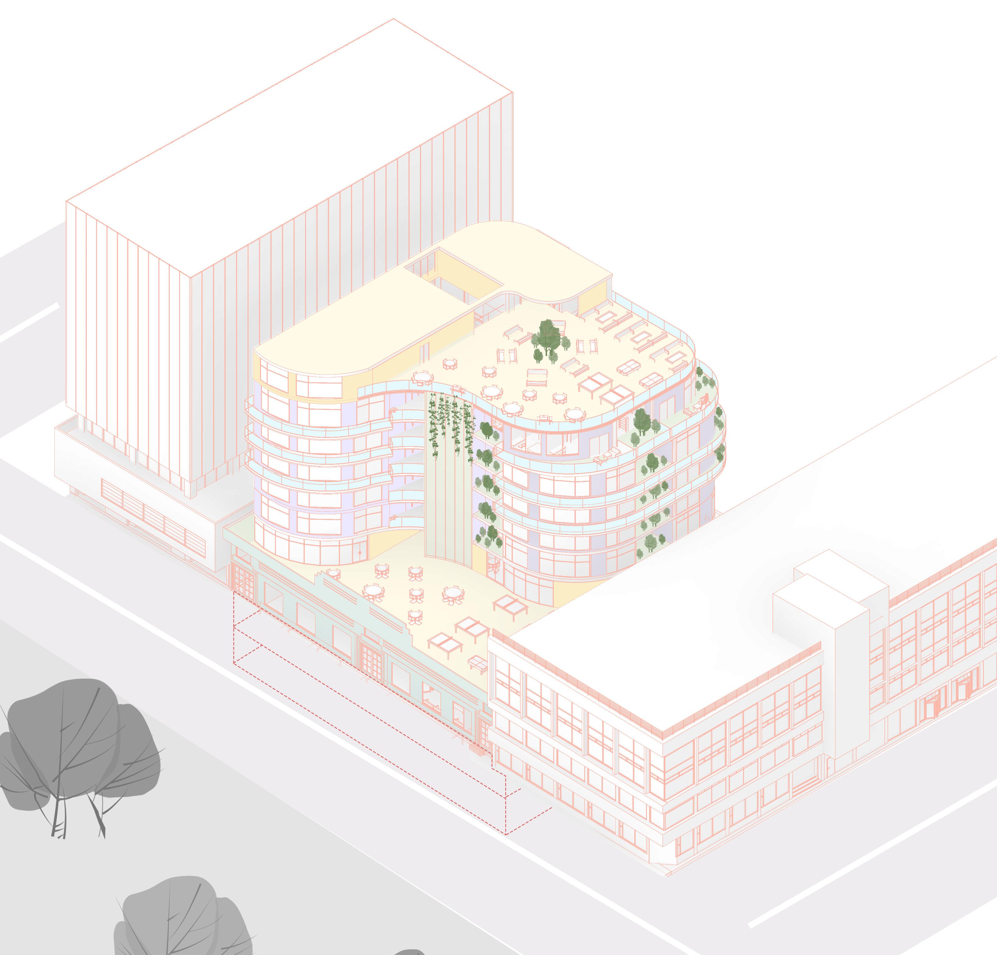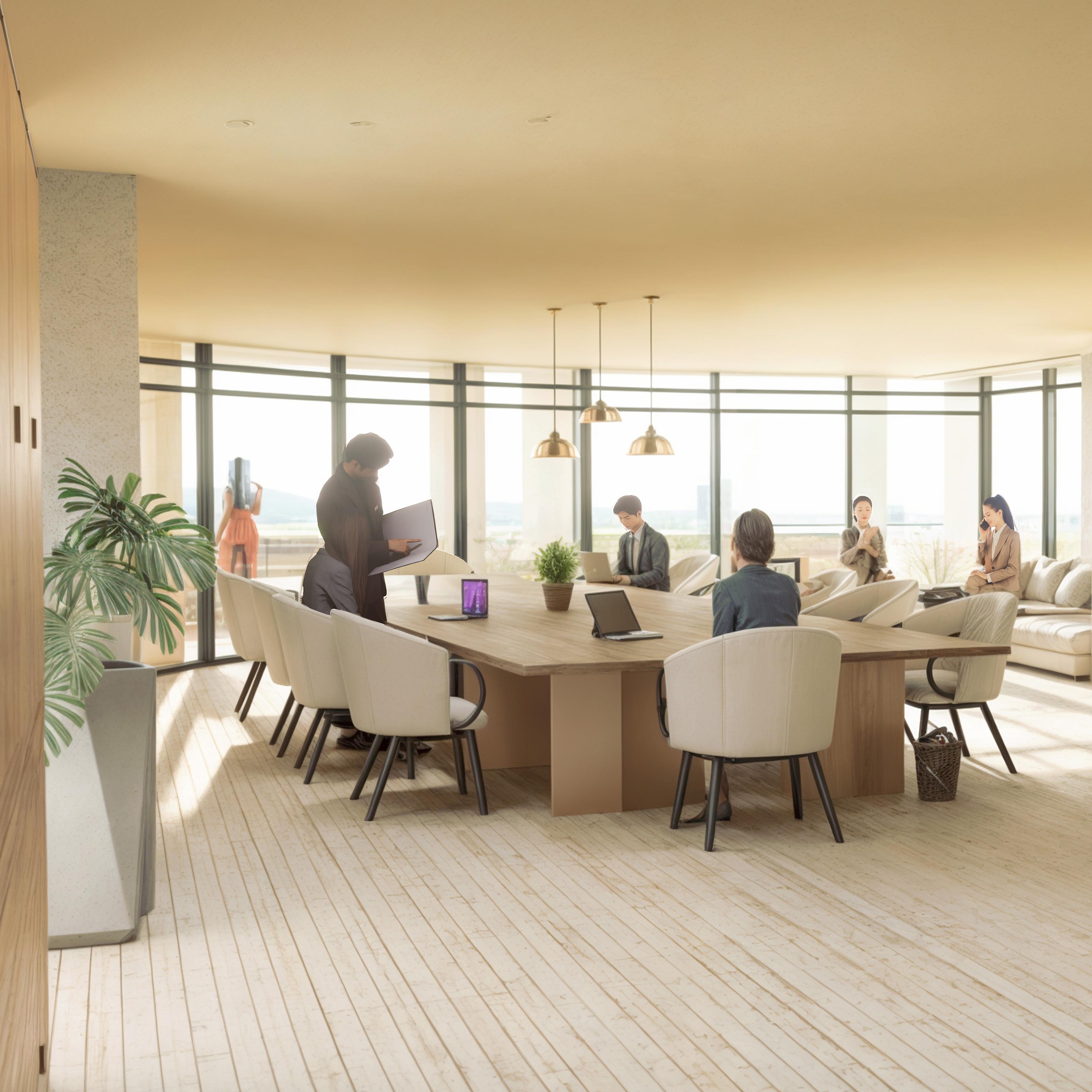 Coworking, salas de conferencias, cuarto de juegos, restaurante, zonas al aire libre, baños públicos.