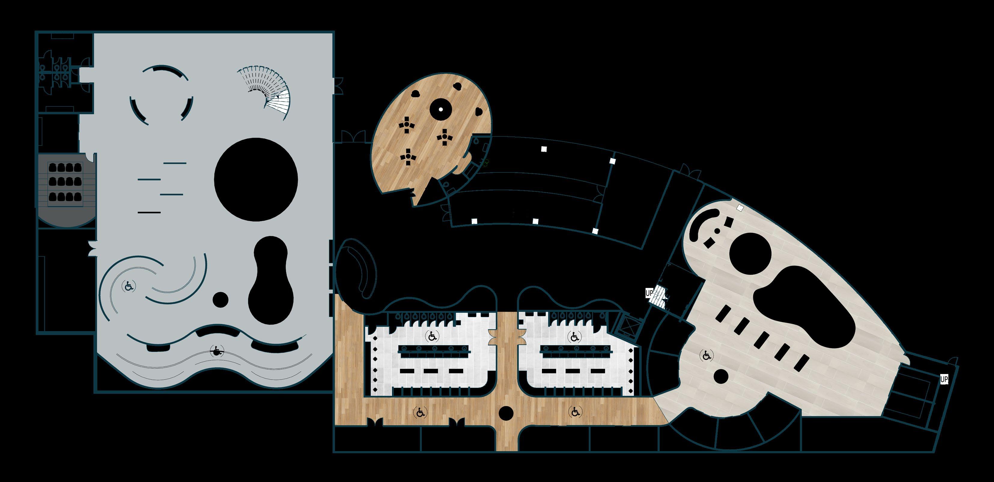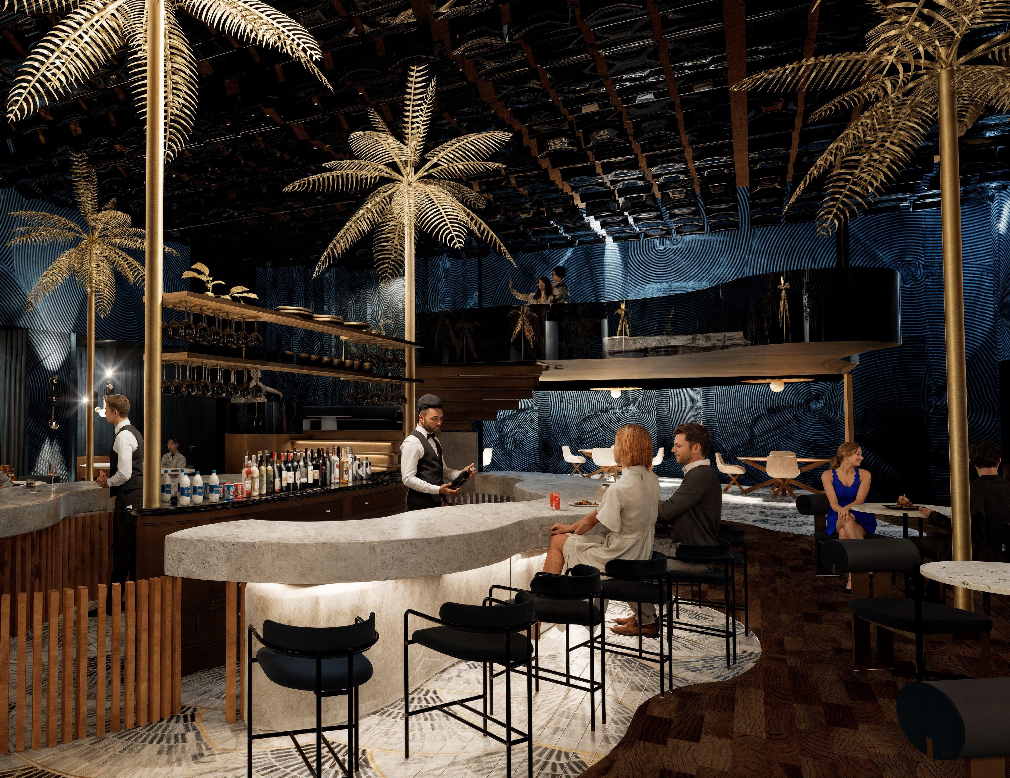 This collaborative project reimagined the ice skating rink on decks 3 and 4 of Royal Caribbean’s Oasis of the Seas, transforming it into an immersive and interactive destination for Gen Z travelers. The design focused on social connection, creative expression, and highly visual experiences, including monochromatic art rooms and a globally inspired dining area.