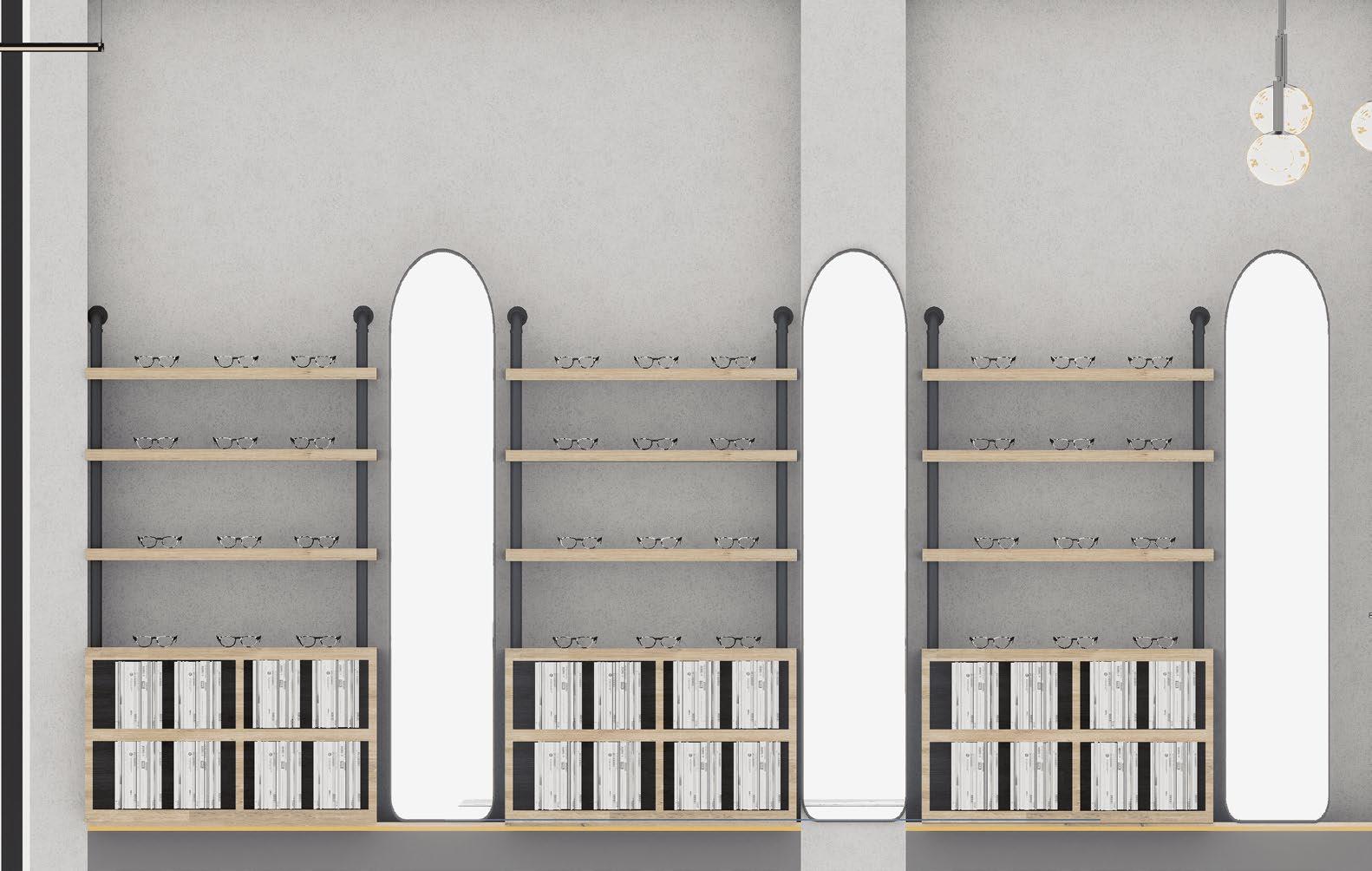 “The Balanced Frame” explores the intersection of modern minimalism and classic elegance to create a space that’s both functional and inspiring. Rooted in Warby Parker’s values of quality, sustainability, and innovation, the design uses refined materials, clean lines, and tailored micro-environments to frame each interaction with purpose supporting creativity, focus, and a sense of connection.