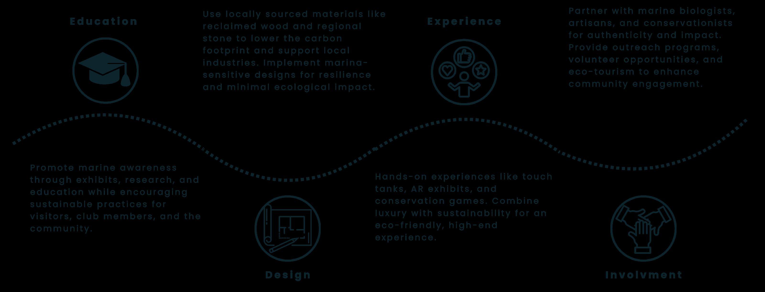 “Elegance in Balance” is a refined coastal sanctuary where sophistication and sustainability coexist in perfect harmony. This marina is designed to embrace the sea’s natural beauty while honoring environmental responsibility, with eco-conscious materials and coastalinspired architecture that create a serene, luxurious experience. Beyond a docking space, it’s a place for community connection, marine conservation, and education, inviting guests to engage deeply with the ocean’s beauty and fragility. Elegance in Balance exemplifies the potential for luxurious, balanced design that uplifts both visitors and the surrounding marine ecosystem.