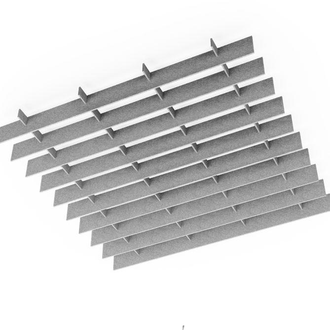 Absorb sound, reducing noise transfer between spaces. Its sleek, linear design also adds a modern touch while improving acoustic comfort in high-traffic areas.