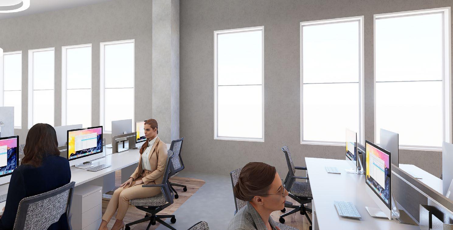 Maximizing natural light is essential in our design, especially given the building’s limited side windows. By minimizing walls and partitions, we allow daylight to penetrate deep into the floor plan reducing reliance on artificial lighting and creating a brighter, more inviting workspace.
