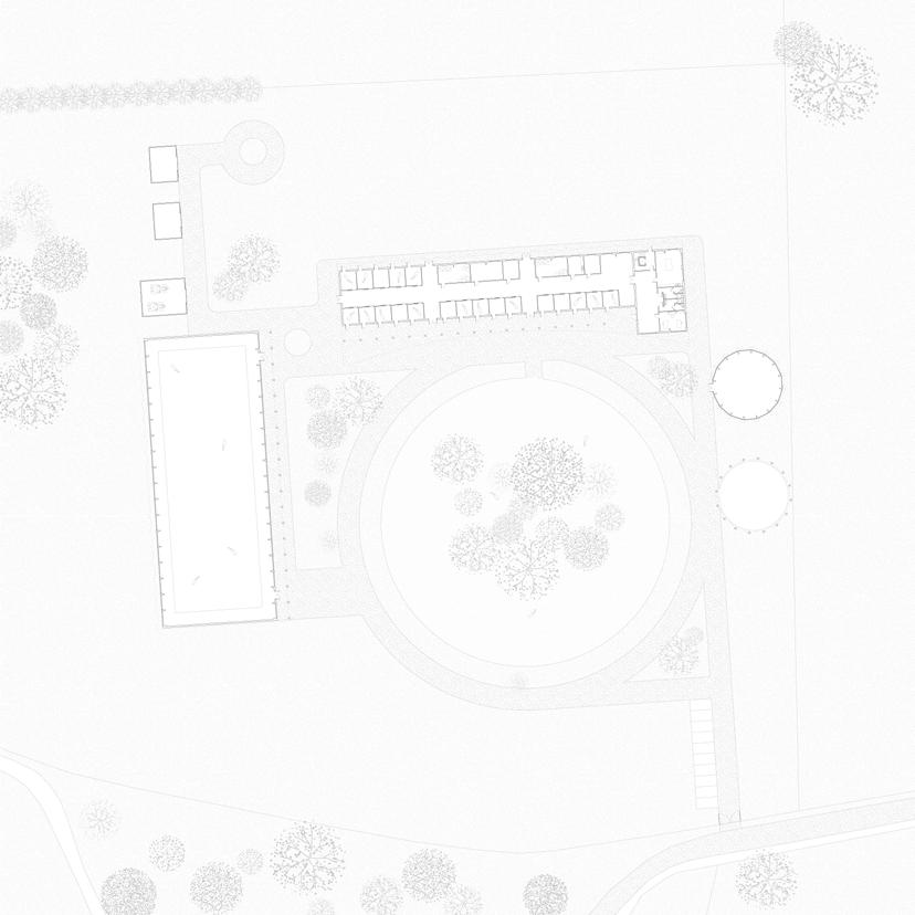 The equestrian centre encompasses four key structures, each thoughtfully positioned within a field adjacent to the village. These structures include a spacious paddock, an indoor riding arena, stables, and storage barns. A meticulous approach has been taken in their placement, aligning them parallel to the existing natural and agricultural lines that are marked by the wooden fences, field lines and flourishing trees. By seamlessly integrating the centre within the surrounding landscape a harmonious coexistence with Bywell’s existing environment was ensured.