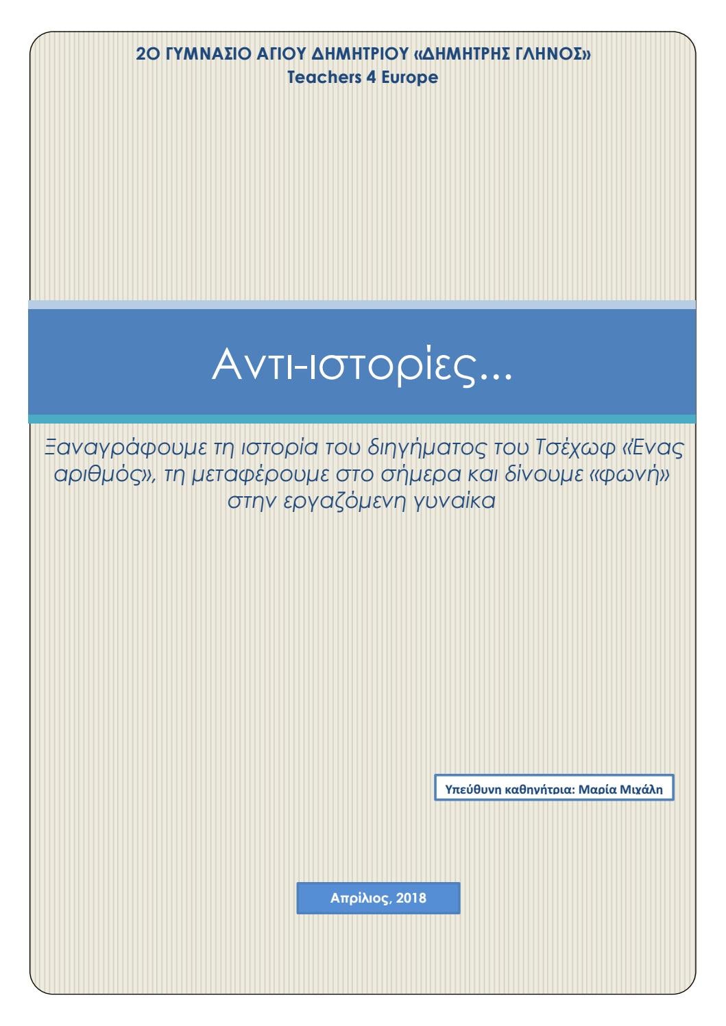 Αντι-ιστορίες... Ξαναγράφουμε τη ιστορία του διηγήματος του Τσέχωφ «Ένας αριθμός», τη μεταφέρουμε στο σήμερα και δίνουμε «φωνή» στην εργαζόμενη γυναίκα