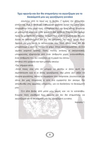 Έχω «φωνή» και δεν θα σταματήσω να αγωνίζομαι για τα δικαιώματά μου ως εργαζόμενη γυναίκα Δουλεύω από το πρωί ως το βράδυ, 7 ημέρες την εβδομάδα, ελπίζοντας πως η δεκάωρη καθημερινή εργασία αυτού του μήνα ίσως πληρωθούν στην ώρα τους. Απλήρωτη εδώ και τρεις μήνες. Δουλεύω με ματωμένα χέρια και κάθε φορά η ίδια ασέβεια. Παίρνω τον δρόμο προς τα γραφεία της εταιρίας. Σίγουρη πως κι αυτό το μήνα δεν θα μου δώσει τα δεδουλευμένα και δεν θα μπορέσω να κάνω δώρο στον 3χρονο γιο μου αυτό το αυτοκινητάκι που τόσο ήθελε, πως δεν θα μπορέσουμε κι αυτό το Πάσχα να φάμε, όπως φανταζόμασταν, σε ένα γεμάτο γιορτινό τραπέζι. Τόσες πολλές ανάγκες κι οικογενειακές υποχρεώσεις εξαρτώνται από έναν άνθρωπο χωρίς ενσυναίσθηση, έναν άνθρωπο που δεν νοιάζεται για τη χαρά του άλλου. Μπαίνω στο γραφείο και πριν μιλήσω ακούω: -Όχι, σήμερα αλλά... -Αλλά ποιος σας είπε ότι μπορώ να αντέξω κι άλλο αυτή την εκμετάλλευση εγώ κι οι άλλες εργαζόμενες εδώ μέσα; Δεν αξίζει να λέγεσαι εργοδότης. Μόνο το συμφέρον σου σκέφτεσαι. Δουλεύουμε για σένα, δεν μας πληρώνεις κι ούτε ένα ευχαριστώ δεν ακούμε. Θα απευθυνθώ στις αρμόδιες υπηρεσίες, για να διεκδικήσω τα δικαιώματά μου. Ό,τι είπα βγήκε από μέσα μου, χωρίς καν να το καταλάβω. Ένιωσα τόσο ελεύθερη! Έχω «φωνή» και δεν θα σταματήσω να αγωνίζομαι για τα δικαιώματά μου ως εργαζόμενη γυναίκα. Ναταλία Τ.