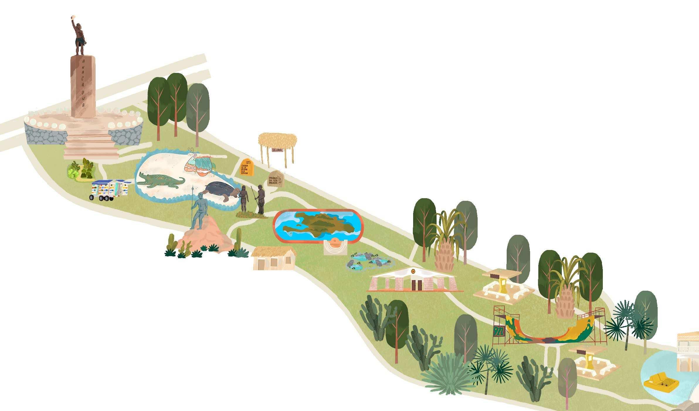 Este ha sido un recorrido mitológico en un ambiente natural con representaciones de nuestros antepasados taínos. La naturaleza representada en la tierra, así como la hierba, las plantas, las especies representadas, evidencian la armoniosa relación que tenían estos primeros pobladores con su entorno natural.